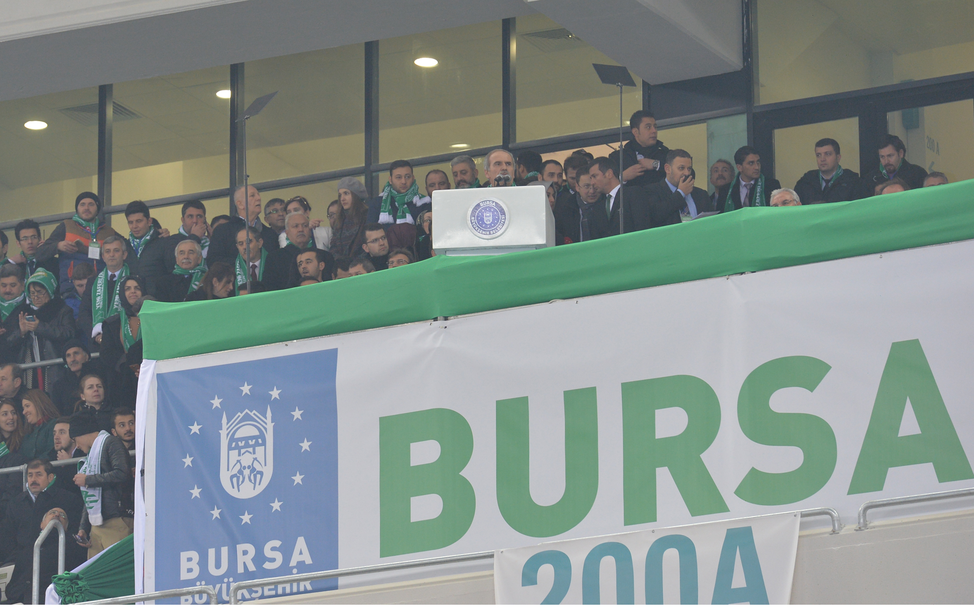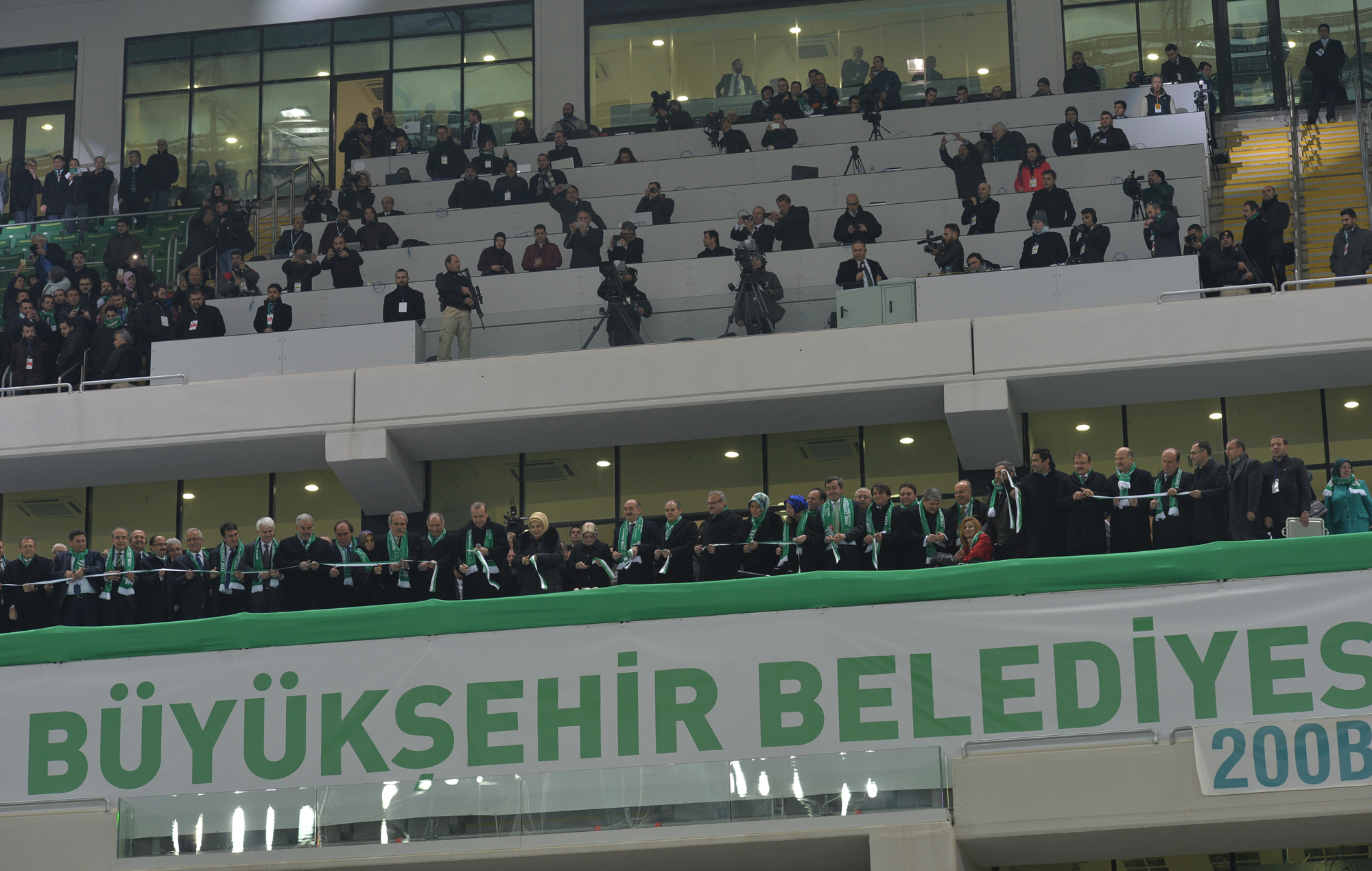 - BURSA BÜYÜKŞEHİR BELEDİYESİ TARAFINDAN YAPTIRILAN YENİ STADYUM CUMHURBAŞKANI RECEP TAYYİP ERDOĞAN’IN DA KATILDIĞI TÖRENLE ŞÖLEN HAVASINDA AÇILDI.