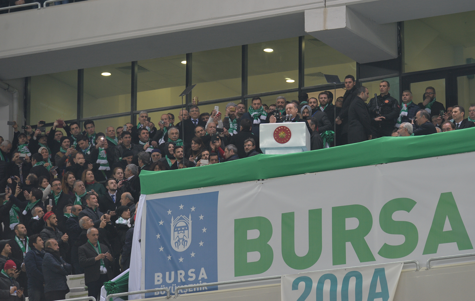 - CUMHURBAŞKANI RECEP TAYYİP ERDOĞAN, “MUTLUYUM, BURSA ŞANINA YAKIŞIR BÖYLE GÜZEL BİR STADYUMA SAHİP OLDU” DEDİ.