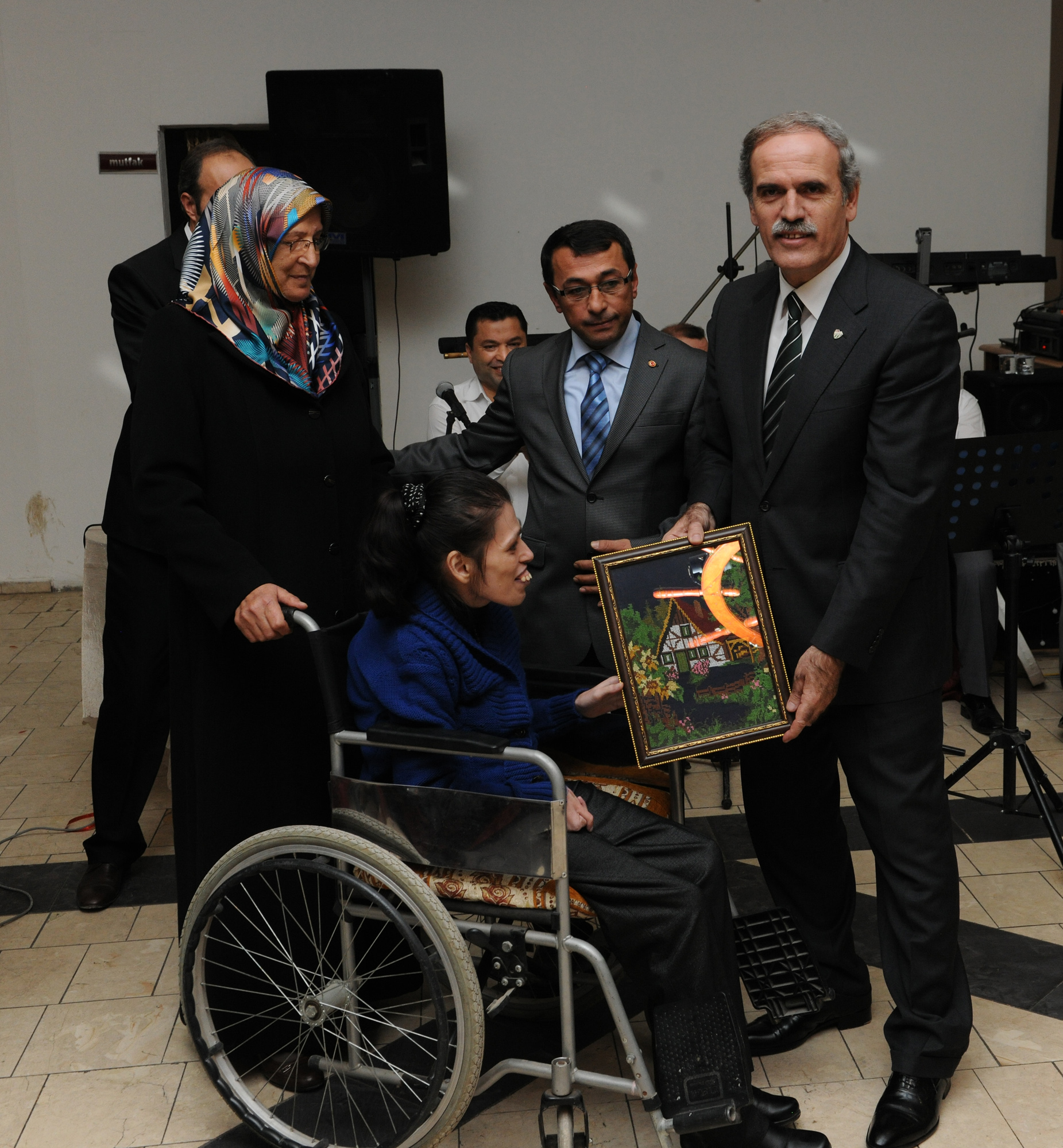 Etkinlikte Yenişehir Zihinsel ve Fiziksel Engelliler Derneği Başkanı Harun Sak, Başkan Altepe’ye, engellilere yönelik olarak yaptığı hizmetler nedeniyle teşekkür plaketi verdi. Dernek üyesi Yasemin Kösem de tekerlekli sandalye ile sahneye kadar gelip Başkan Altepe, kendi yaptığı el işlemesi bir nakışı hediye etti.