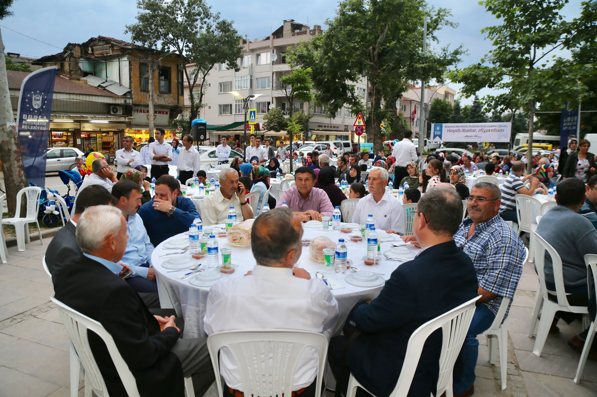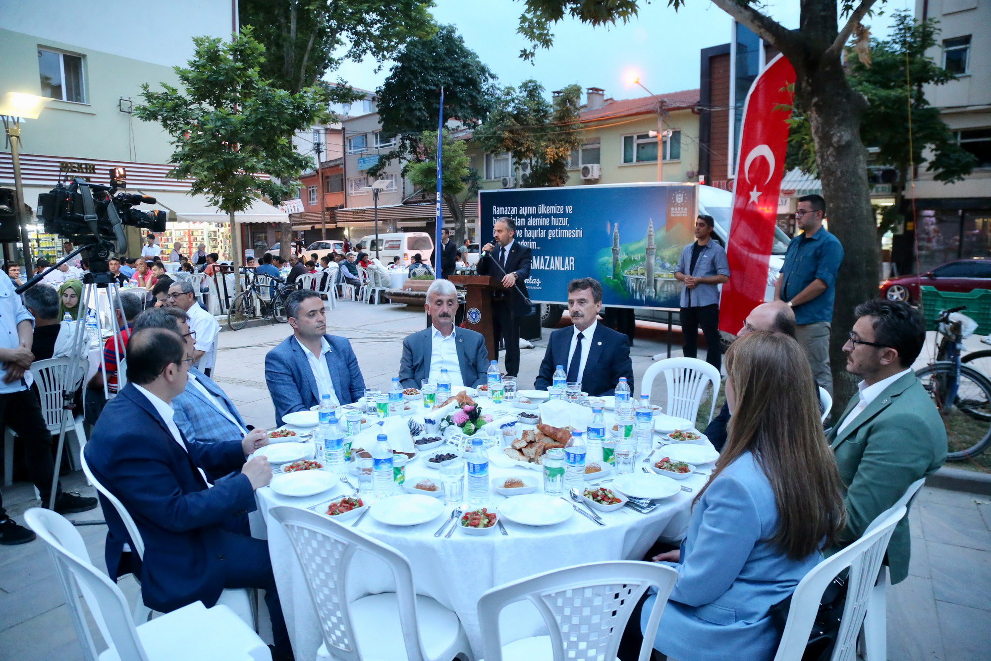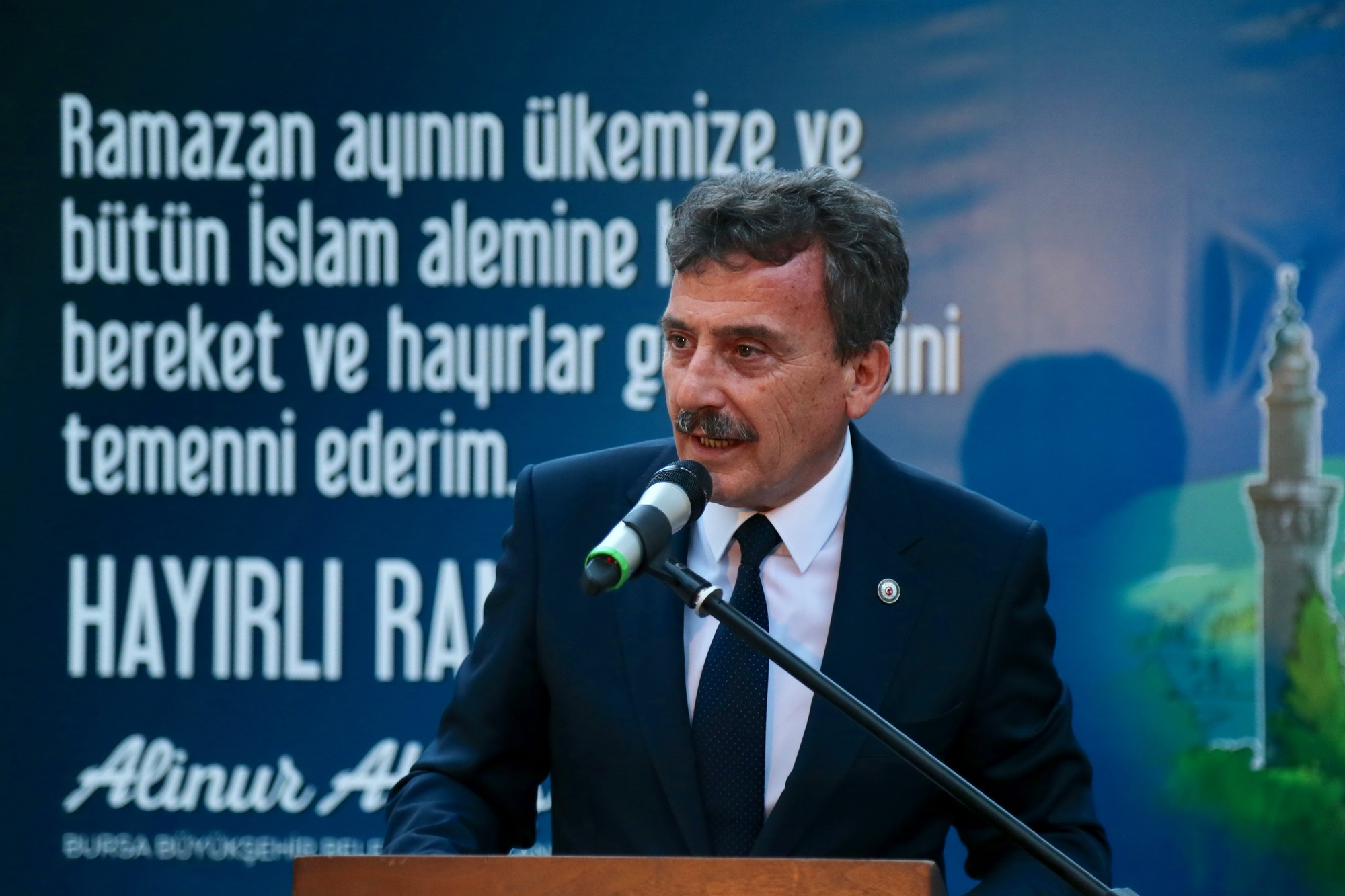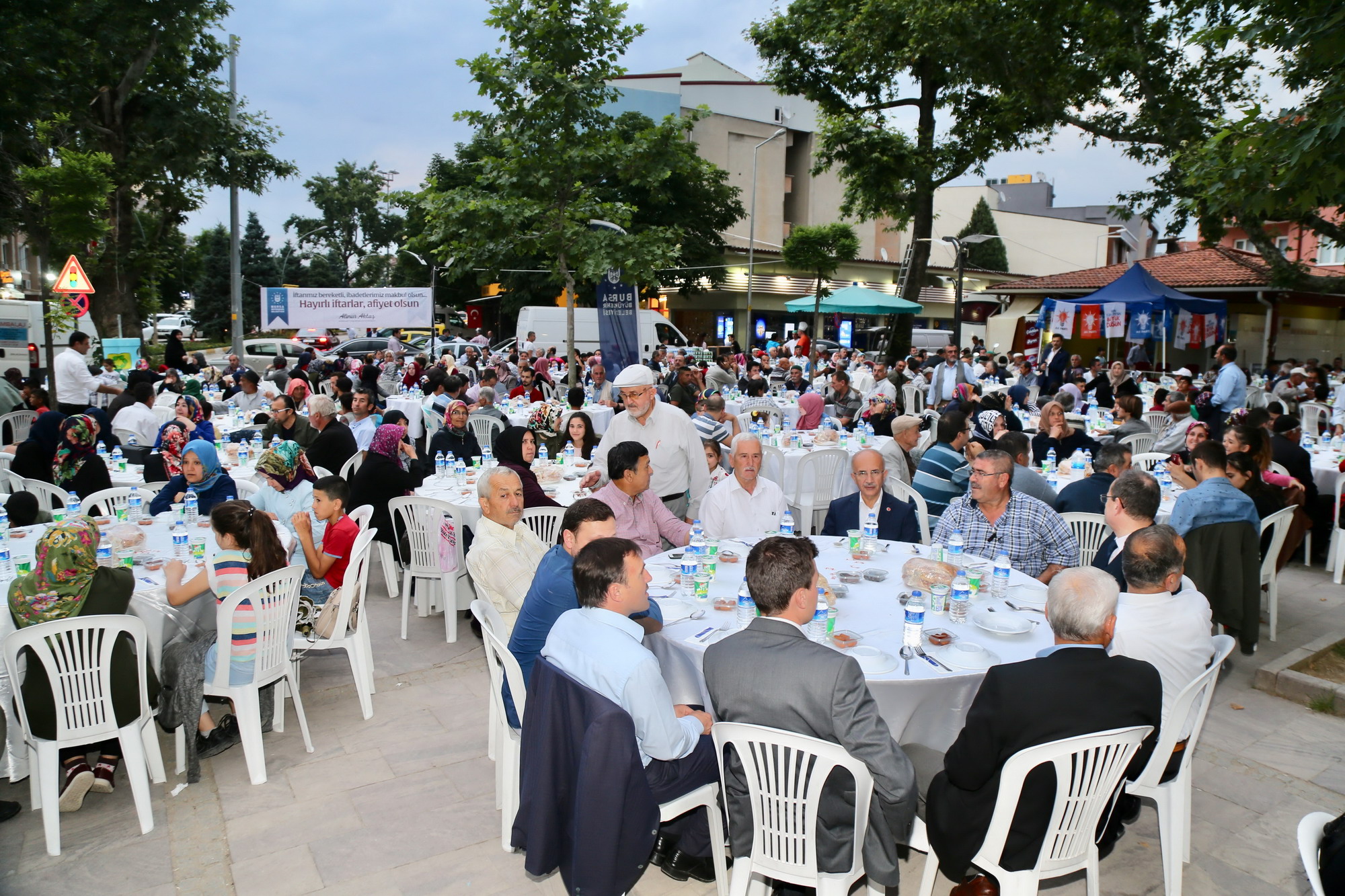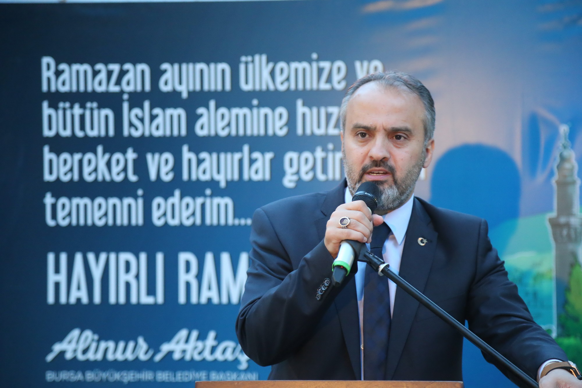 Büyükşehir Belediye Başkanı Alinur Aktaş, iftar öncesinde masaları tek tek dolaşarak vatandaşları dinledi. Ardından kürsüye çıkan ve halka hitap eden Başkan Alinur Aktaş, Büyükşehir Belediyesi’nin kurduğu iftar sofralarıyla ramazan ayının dolu dolu geçtiğini söyledi. Bursa’da olduğu gibi Balkan ve Kafkas ülkelerinde de benzer atmosferin yaşandığını, kurulan onlarca iftar sofrasıyla yüzlerce-binlerce Müslümanın aynı mekanda omuz omuza oruç açtığını ifade eden Başkan Aktaş, “Bizler burada huzur ve sükunla iftar saatini bekliyoruz ama şu anda dünyanın mazlum coğrafyalarında, ‘Acaba başımıza bomba düşer mi?’ kaygısıyla yaşayan milyonlarca Müslüman var. Suriye, Irak, Filistin, Mısır ve Afrika’nın bir kısım bölgelerinde ciddi sıkıntılar yaşanıyor. Kardeşlerimiz için bizler de bu acıyı yüreklerimizde hissediyoruz” diye konuştu.