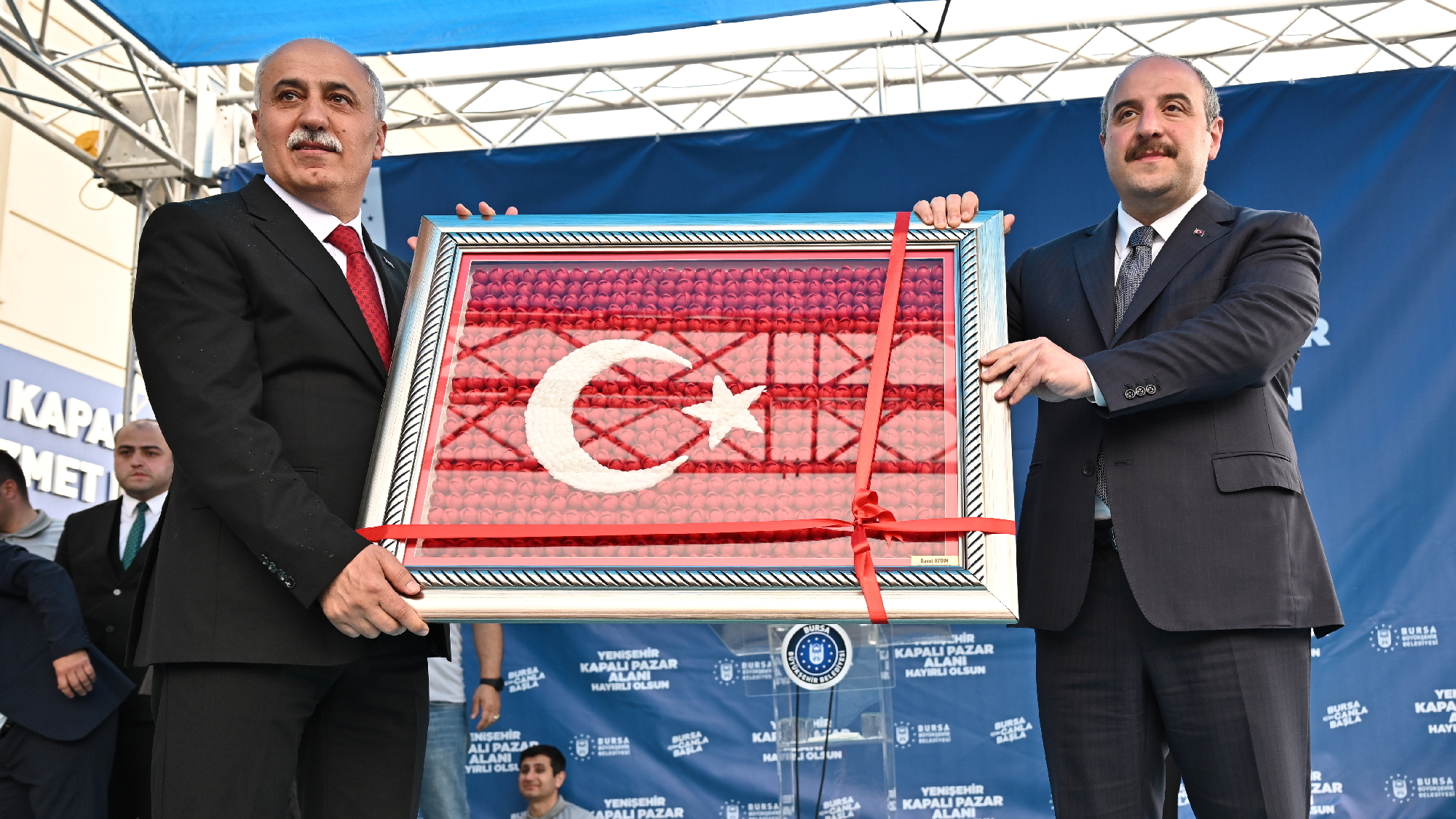Yenişehir Belediye Başkanı Davut Aydın ise ilçeye kazandırılan kapalı pazar alanı için Büyükşehir Belediye Başkanı Alinur Aktaş’a teşekkür etti. Cumhur ittifakının bir temsilcisi olarak seçim öncesi verdikleri sözleri bir bir yerine getirdiklerini ifade eden Aydın, “Bizlere her zaman desteğini veren başta Cumhurbaşkanımız Sayın Recep Tayyip Erdoğan olmak üzere, Genel Başkanımız Dr. Devlet Bahçeli'ye, bakanlarımıza, birçok hizmette emeği olan ve bizi sürekli destekleyen Büyükşehir Belediye Başkanımız Sayın Alinur Aktaş’a Yenişehir halkı adına teşekkür ediyorum” dedi.