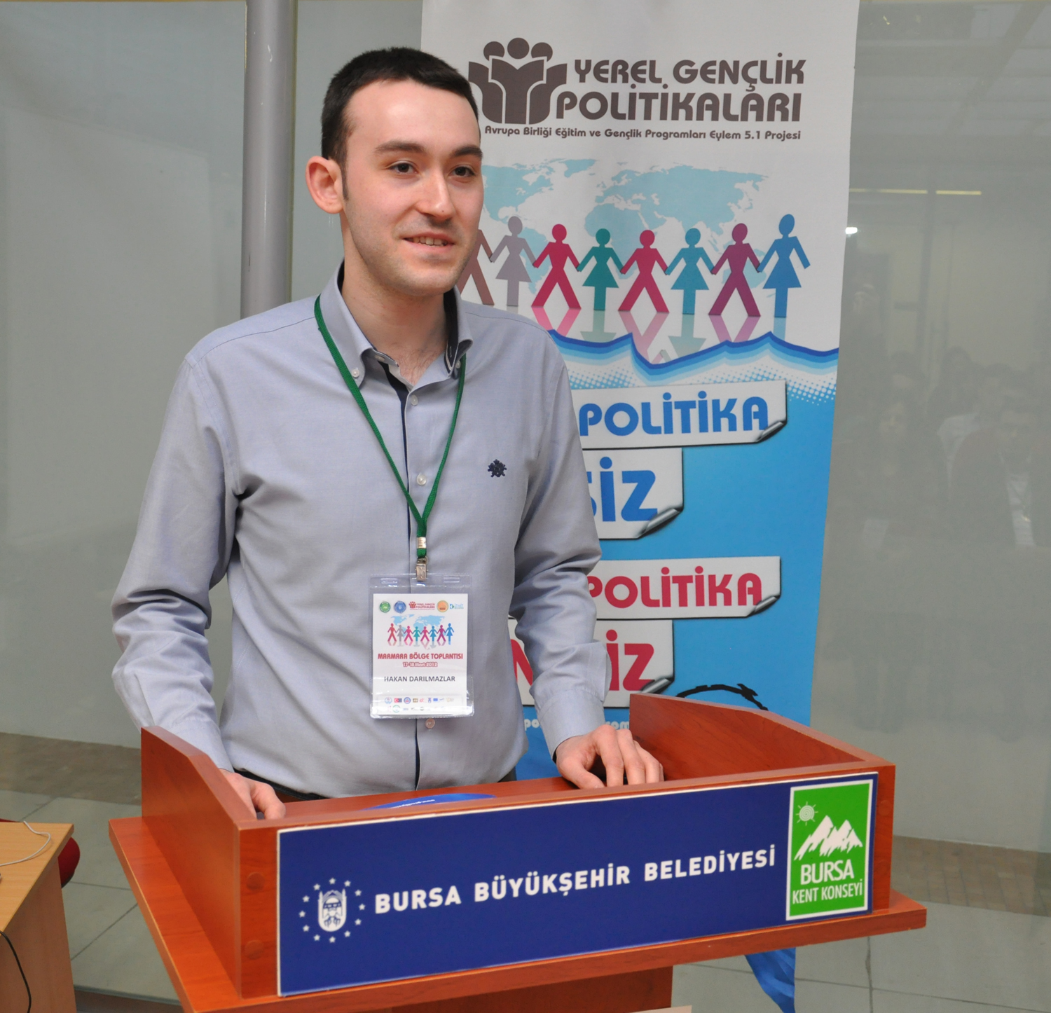 Bursa Kent Konseyi Gençlik Meclisi Başkanı Hakan Darılmazlar, ‘Yerel Gençlik Politikaları’ Marmara Bölge Toplantısı’na ev sahipliği yapmaktan mutluluk duyduklarını söyledi. Yerel demokrasi kültürünün en önemli öğelerinden birinin de gençlik meclisleri olduğu söyleyen Darılmazlar, “Gençlik meclislerine katılan gençler istihdam ve kariyer alanında, yerel yönetime katılım alanında projeler üretiyor ve kentlerine katkı sağlıyor” dedi.