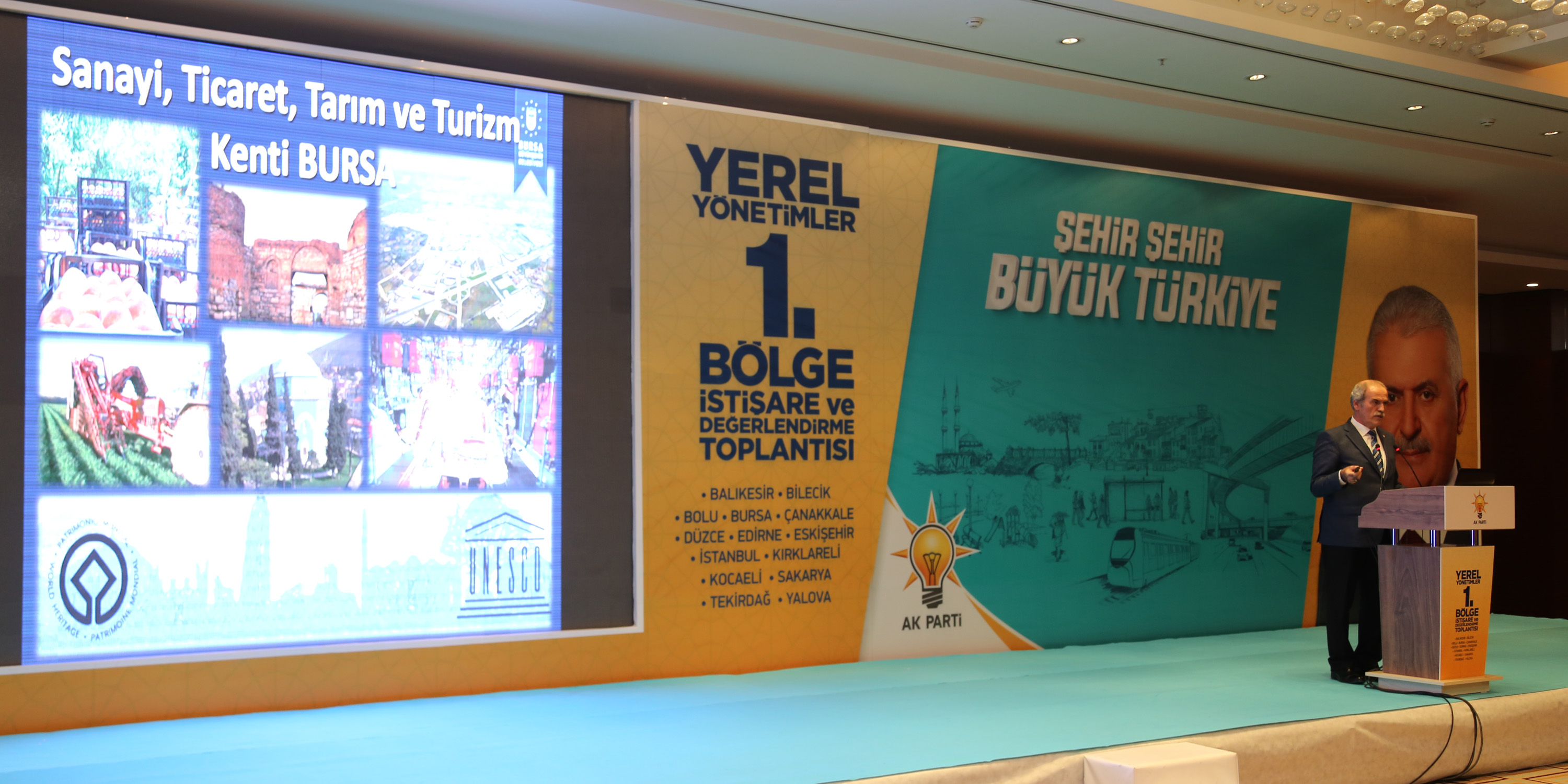 - Bursa’da gerçekleştirilen ‘Yerel Yönetimler 1. Bölge İstişare ve Değerlendirme Toplantısı’, ‘Şehir Şehir Büyük Türkiye’ hedefiyle, Marmara Bölgesi ve yakın çevresinde, hizmetlerini sürdüren yerel yönetimlerin temsilcilerini Bursa’da bir araya getirdi.