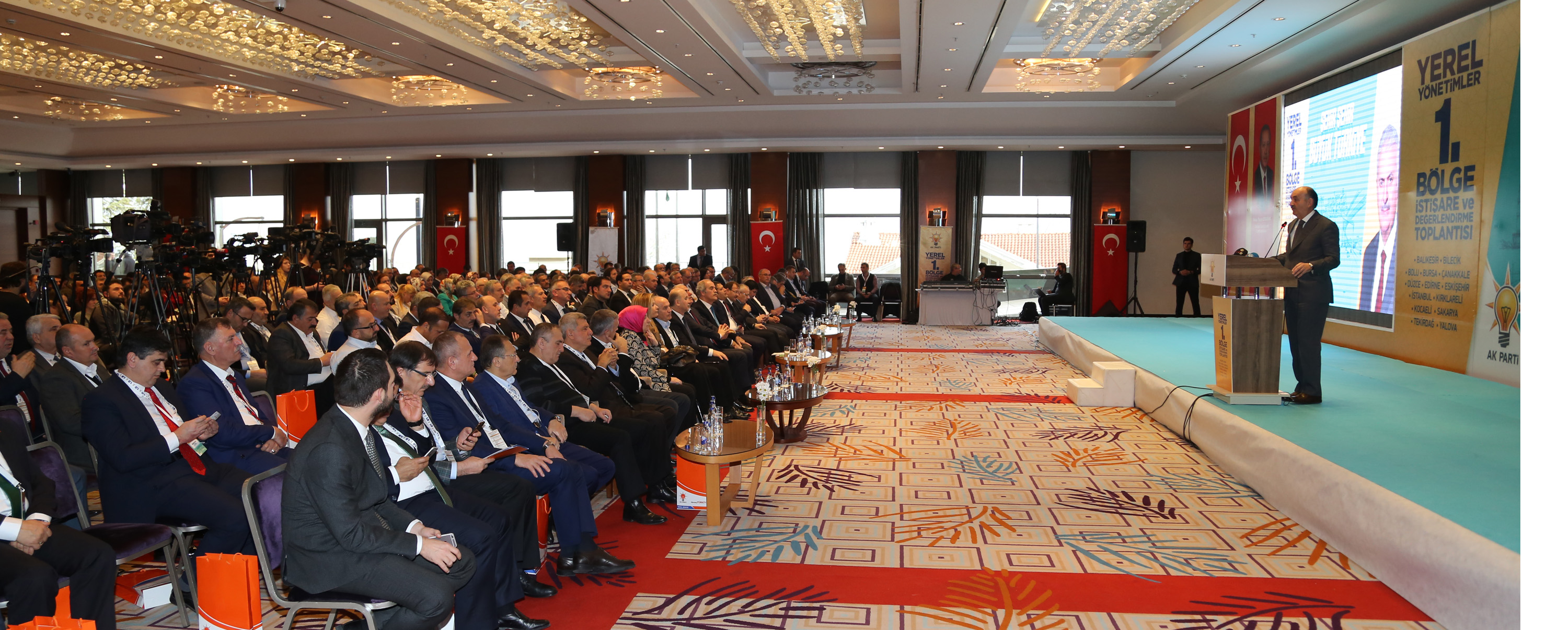Bursa Büyükşehir Belediyesi’nin ev sahipliğinde Grand Swiss-Bellhotel Çelikpalas Otel’de AK Parti tarafından gerçekleştirilen ‘Yerel Yönetimler 1. Bölge İstişare ve Değerlendirme Toplantısı’na Çalışma ve Sosyal Güvenlik Bakanı Mehmet Müezzinoğlu ile Bursa Büyükşehir Belediye Başkanı Recep Altepe, İstanbul Büyükşehir Belediye Başkanı Kadir Topbaş, Kocaeli Büyükşehir Belediye Başkanı İbrahim Karaosmanoğlu, Balıkesir Büyükşehir Belediye Başkanı Ahmet Edip Uğur ve Sakarya Büyükşehir Belediye Başkanı Zeki Toçoğlu ile Bilecik, Bolu, Çanakkale, Düzce, Edirne, Eskişehir, Kırklareli, Tekirdağ ve Yalova belediyelerinden başkanlar ve belediye temsilcileri, milletvekilleri, ilçelerin ve beldelerin belediye başkanları, meclis üyeleri ve belediyelerin bürokratları olmak üzere yaklaşık 160 kişi katıldı. Toplantıda, geçen hafta İstanbul’da, bugün sabah saatlerinde de Kayseri’de yaşanan hain saldırıda yaşamını yitiren şehitler anıldı ve birlik mesajları verildi.