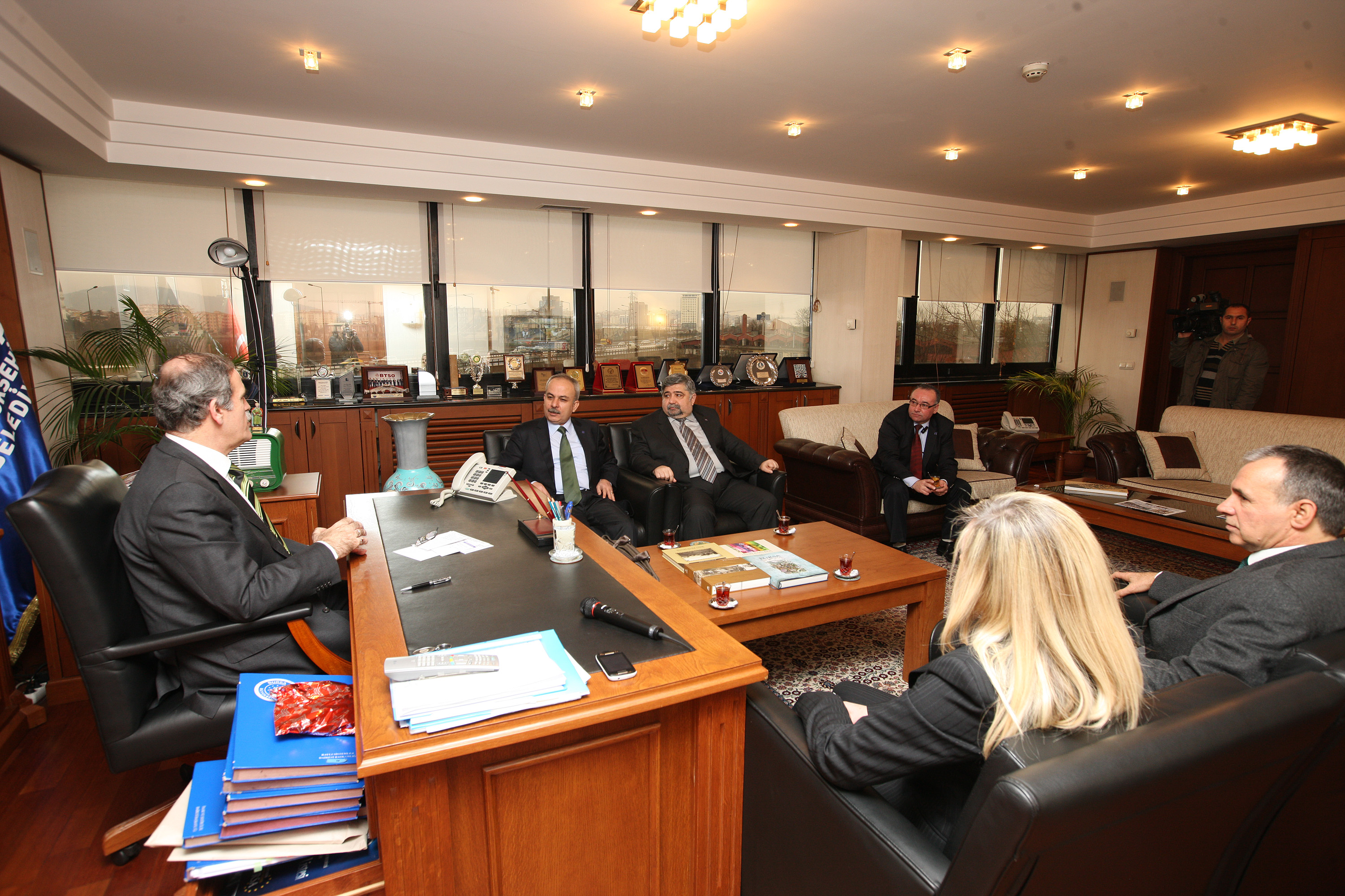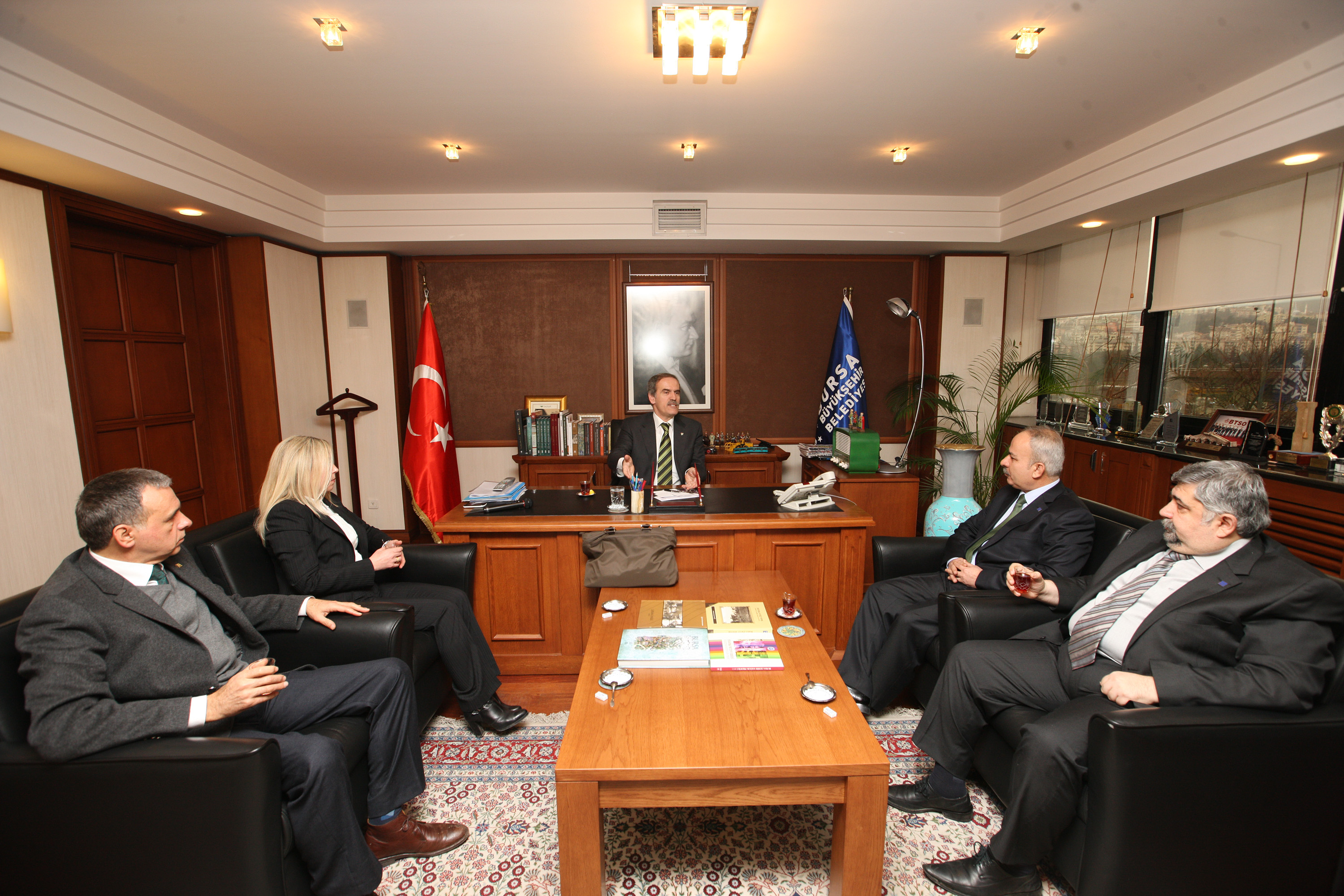 Başkan Altepe, TMMOB Makine Mühendisleri Odası Bursa Şubesi yönetim kurulu üyelerini kabul BUSKİ’deki başkanlık makamında ağırladı. Makine Mühendisleri Odası Bursa Şube Başkanı İbrahim Mart, Başkan Vekili Feridun Tetik, Sekreter Fikri Düşünceli, Sayman Fikret Çaral ve Yönetim Kurulu Üyesi Hülya Varlık’ın katıldığı ziyaretin gündemini yerli tramvay üretimi oluşturdu.