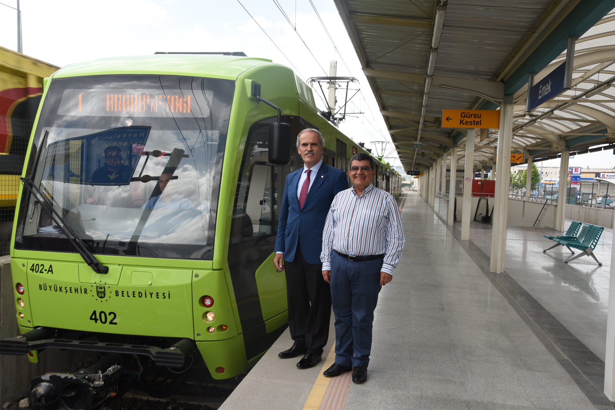 Yolculu test sürüşleri devam eden 3 yerli vagonla Emek hattında yolculuk yapan Büyükşehir Belediye Başkanı Recep Altepe, kent nüfusunun sürekli göç aldığını ve son bir yılda nüfusun 80 bin arttığını kaydetti. Bu nüfus artışında trafik sorununun tek çözümünün raylı sistemler olduğunu dile getiren Başkan Altepe, “Görükle, Kestel ve Emek’e kadar raylı sistemimiz uzandı. Sadece vagon sayısının yetersizliği nedeniyle sıkıntılar yaşanıyordu. Bunun için vagon alımı ihalemizi yapmıştık. İhaleyi yerli firmanın almasıyla 450 milyon TL’ye yakın karımız oldu. Aynı zamanda araçlarımız hem daha kaliteli, hem ekonomik olarak, hem de servis açısından daha karlı. 7,5 yıl önce göreve başladığımızda 48 vagonumuz vardı. Daha sonra 30 ve 24 olmak üzere 54 vagon ilave oldu. Şimdi de 60 yeni yerli vagon ilave oluyor. Yani 48 olan vagon sayımız 7,5 yılda 162’ye çıkıyor. Araçlarımızın üretimi devam ediyor. Bir kısmı test parkurunda test ediliyor. Yolcusuz testleri başarıyla geçen 3 aracımız da bir katar olarak yolculu test seferleri yapıyor. Kısa zamanda tüm araçlarımız sisteme dahil olacak ve sefer sayılarımız da artacak, istasyonlarda bekleme süresi kısalacak” diye konuştu.