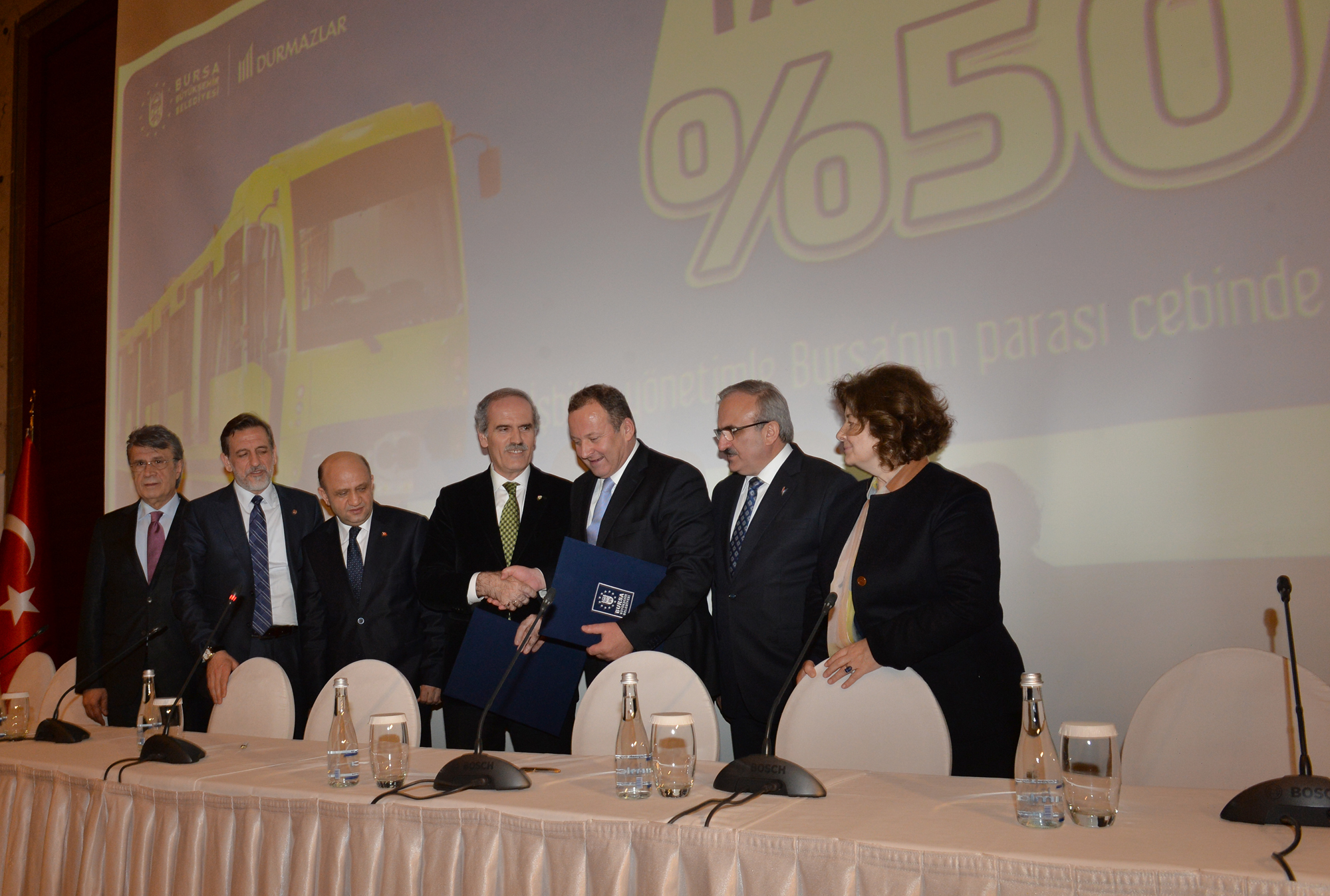 Konuşmaların ardından Büyükşehir Belediye Başkanı Recep Altepe ve Durmazlar Makine Yönetim Kurulu Başkanı Hüseyin Durmaz, ihaleye ilişkin imzaları attı. Bilim Sanayi ve Teknoloji Bakanı Fikri Işık, Bursa Valisi Münir Karaloğlu, BTSO Başkanı İbrahim Burkay ve BTSO Meclis Başkanı Remzi Topuk da Bursa açısından dönüm noktası olacak tarihi ana şahit oldu.