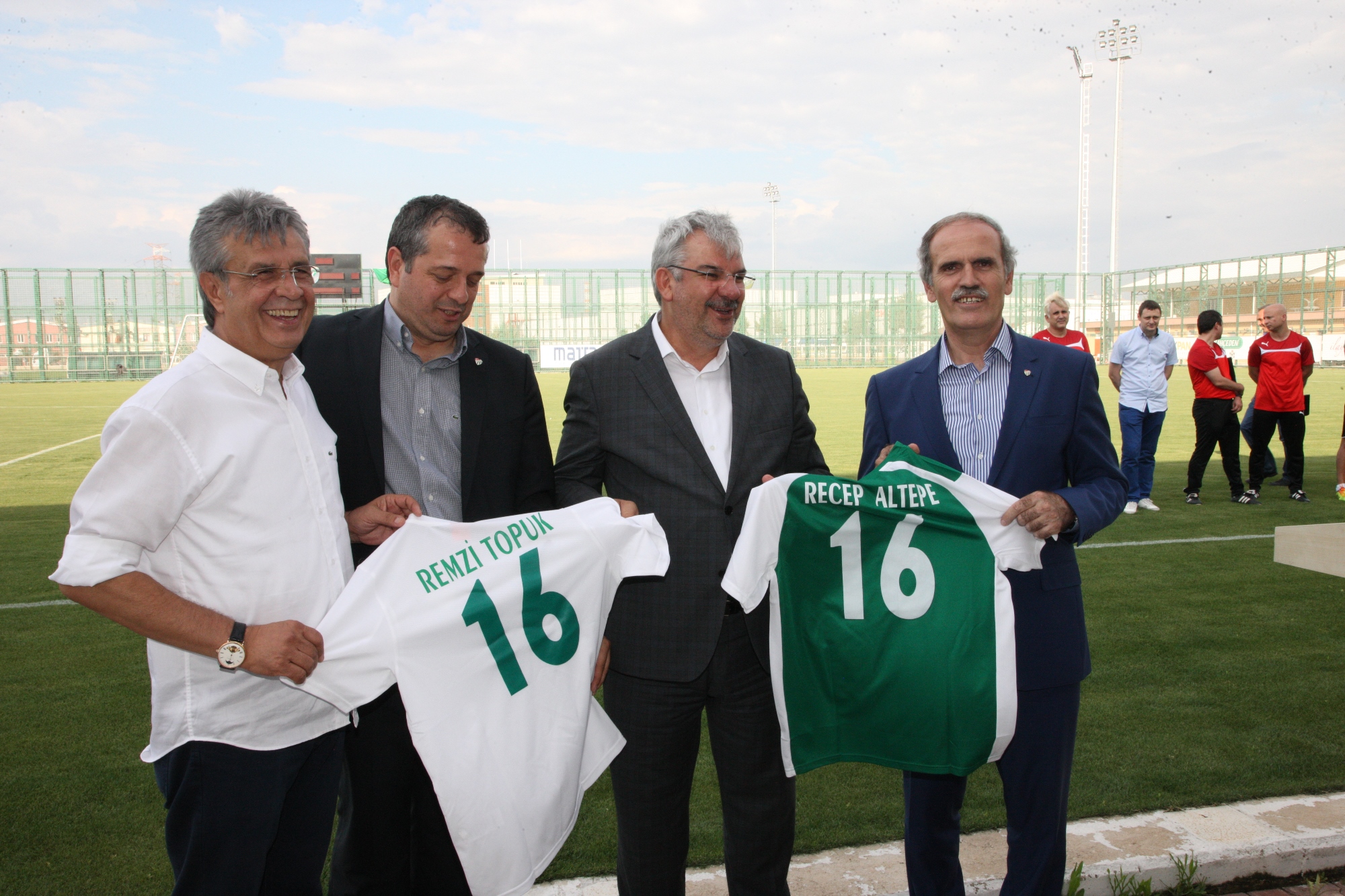Konuşmaların ardından Yeşil Bursa Kulüp Başkanı Mehmet Küçükyalçın, Büyükşehir Belediye Başkanı Recep Altepe ve BTSO Meclis Başkanı Remzi Topuk’a günün anısına kulübün 16 numaralı formasını hediye etti.