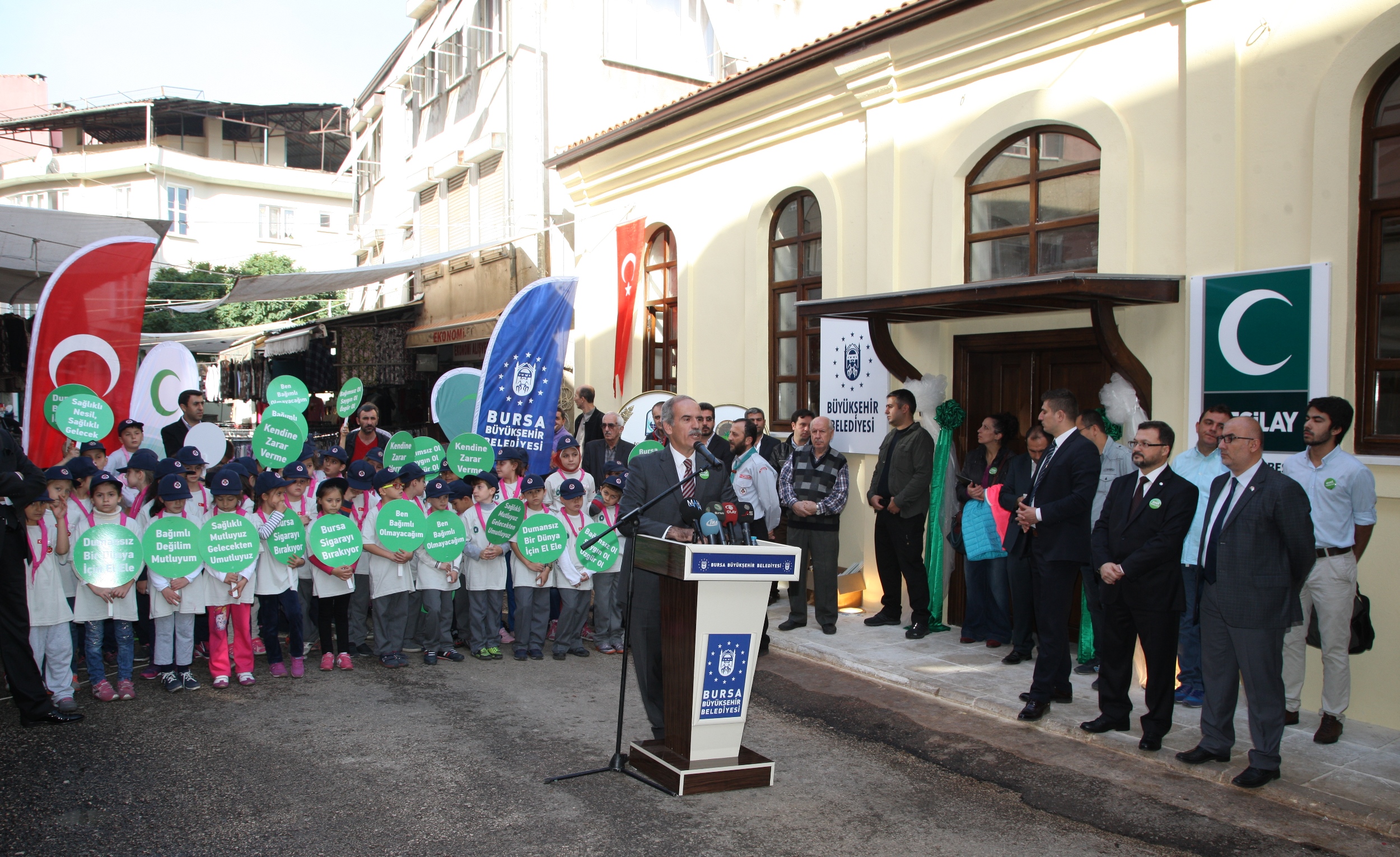 Yeşilay Genel Başkanı Mücahit Öztürk ise Yeşilay’ın kuruluş sürecini anlattığı konuşmasında, “Yeşilay olarak gurur günümüz. Büyükşehir Belediye Başkanı Recep Altepe’ye, Yeşilay Bursa Şubesi’ne bu mekanı emanet ettiği için teşekkür ediyoruz. Sağlıklı gelecek için gençlerin her türlü kötü alışkanlıktan uzak durmaları hedefiyle anne ve babaların da eğitilmeleri gerekiyor. Aynı zamanda bu konuda sivil toplum kuruluşlarına da büyük görev düşüyor” dedi.
