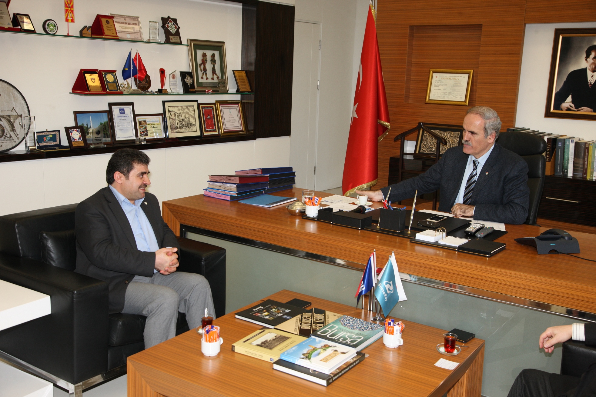 Başkan Altepe, Yeşilay Bursa Şubesi yöneticilerini kabul etti. BURULAŞ’taki başkanlık makamında gerçekleşen ziyarete, Yeşilay Bursa Şube Başkanı Mehmet Raci Arvas ve yönetim kurulu üyeleri katıldı. Ziyarette, Yeşilay Bursa Şubesi’nin faaliyetleri ve Büyükşehir Belediyesi’nin planlanan faaliyetlere katkıları ele alındı.