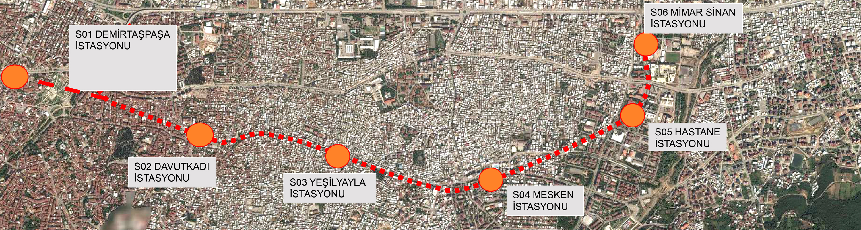 Başkan Altepe, bir yandan projelerin detaylarının hazırlandığını diğer taraftan da zemin etütlerinin yapıldığını ifade ederek, “Yaklaşık 6,5 km’ye yakın güzergah boyunca, tam 34 noktada zemin etüdü yapılıyor. İşte bu güzergahımız Demirtaşpaşa – Gökdere arasından Demirtaşpaşa istasyonunun oradan, Haşim İşçan Caddesi’nden itibaren başlıyor ve daha sonra Davutkadı - Tayyareci Mehmet Ali Caddesi – Mesken – Şevket Yılmaz Hastanesi ve Mimar Sinan İstasyonu’na ulaşmış oluyor” dedi.