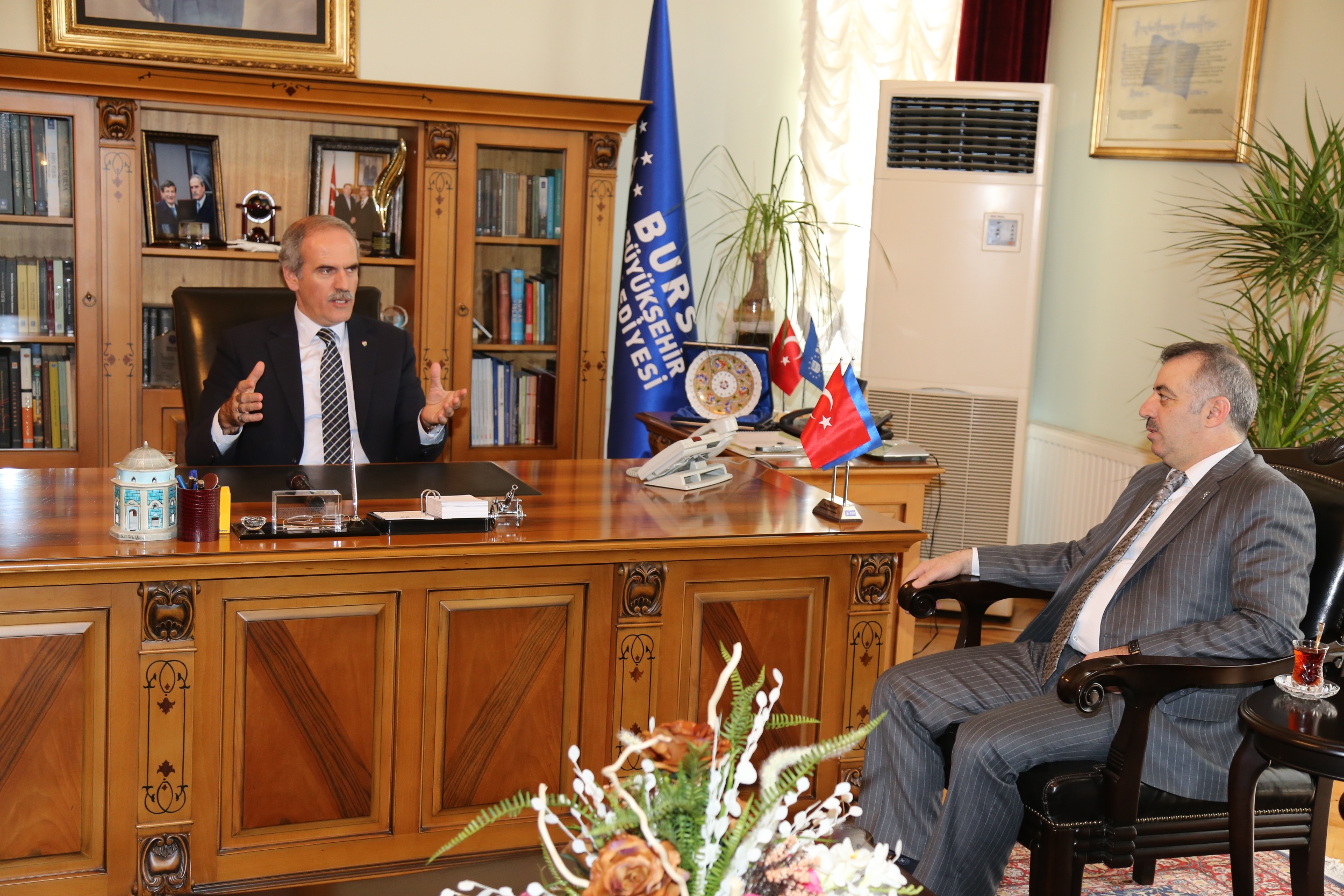 AK Parti Yıldırım İlçe Teşkilatı Başkanı Hüdayi Yazıcı ve yeni yönetim kurulu üyeleri, Bursa Büyükşehir Belediye Başkanı Recep Altepe’yi ziyaret etti. Heykel’deki Tarihi Belediye Binası’nda gerçekleştirilen ziyarette, Başkan Altepe, yeni yönetime başarılar diledi, yapılacak çalışmalarla ilgili üyelerden bilgiler aldı.