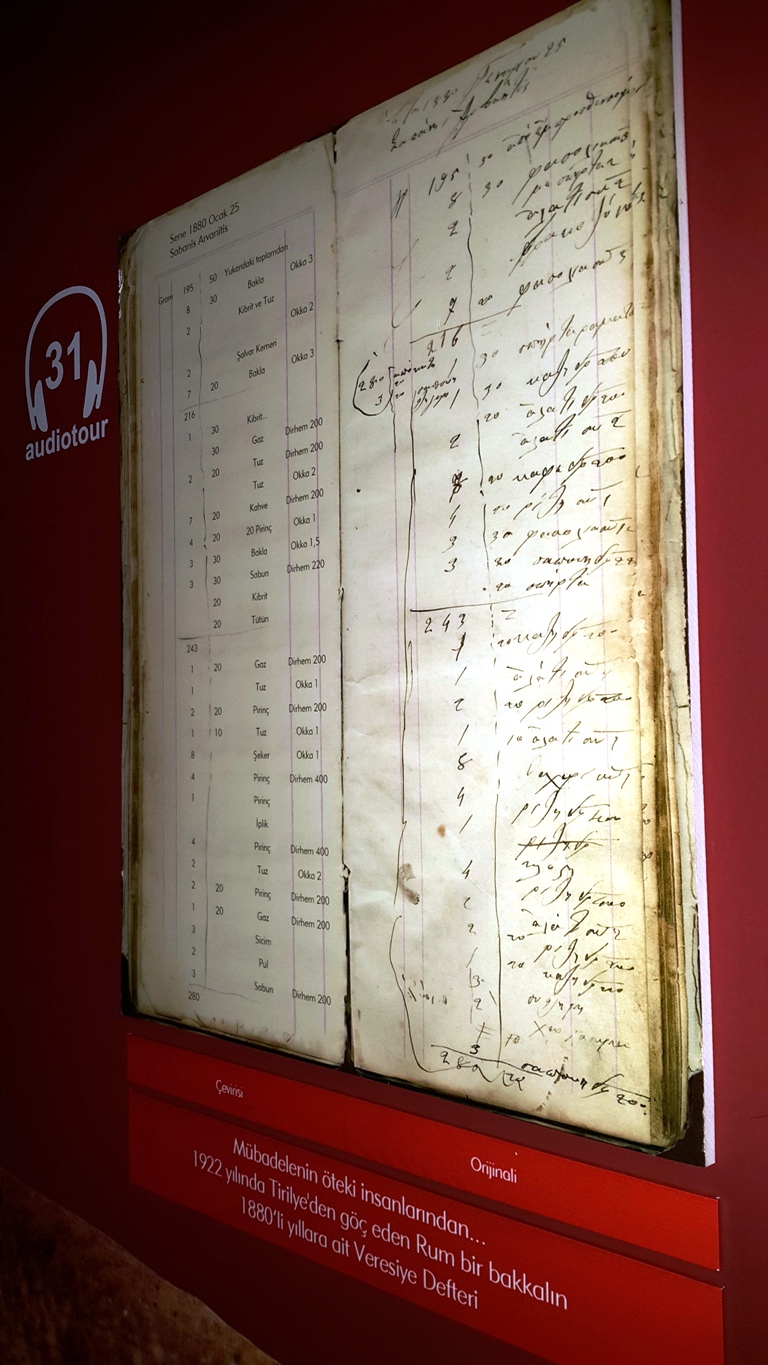 Dönemin şartlarını gözler önüne seren en etkileyici belgelerden biri olarak ziyaretçilerin ilgisini çeken veresiye defteri, o zorlu yılları yaşayan insanların yokluk hallerinin ve fakirliğinin izlerini taşıyor. Rum bakkalın komşusu olan Ercan Kara isimli bir vatandaş tarafından müzeye bağışlanan veresiye defterinde ağırlık ölçüsü olarak okka ve dirhem kullanılırken deftere yazılan veresiye kalemleri o tarihlerde hangi gıda maddelerinin çoğunluklu olarak tüketildiğine ilişkin fikir veriyor. Deftere veresiye olarak yazdırılan bir kutu kibrit, gaz, sicim, sabun ve bakla gibi ürünler dikkat çekiyor. Türkiye’nin en eski veresiye defterinin sergilendiği ve kentin göç tarihinin anlatıldığı Bursa Göç Tarihi Müzesi, Pazartesi günleri hariç haftanın 6 günü saat 09.00- 17.30 saatleri arasında gezilebilir.