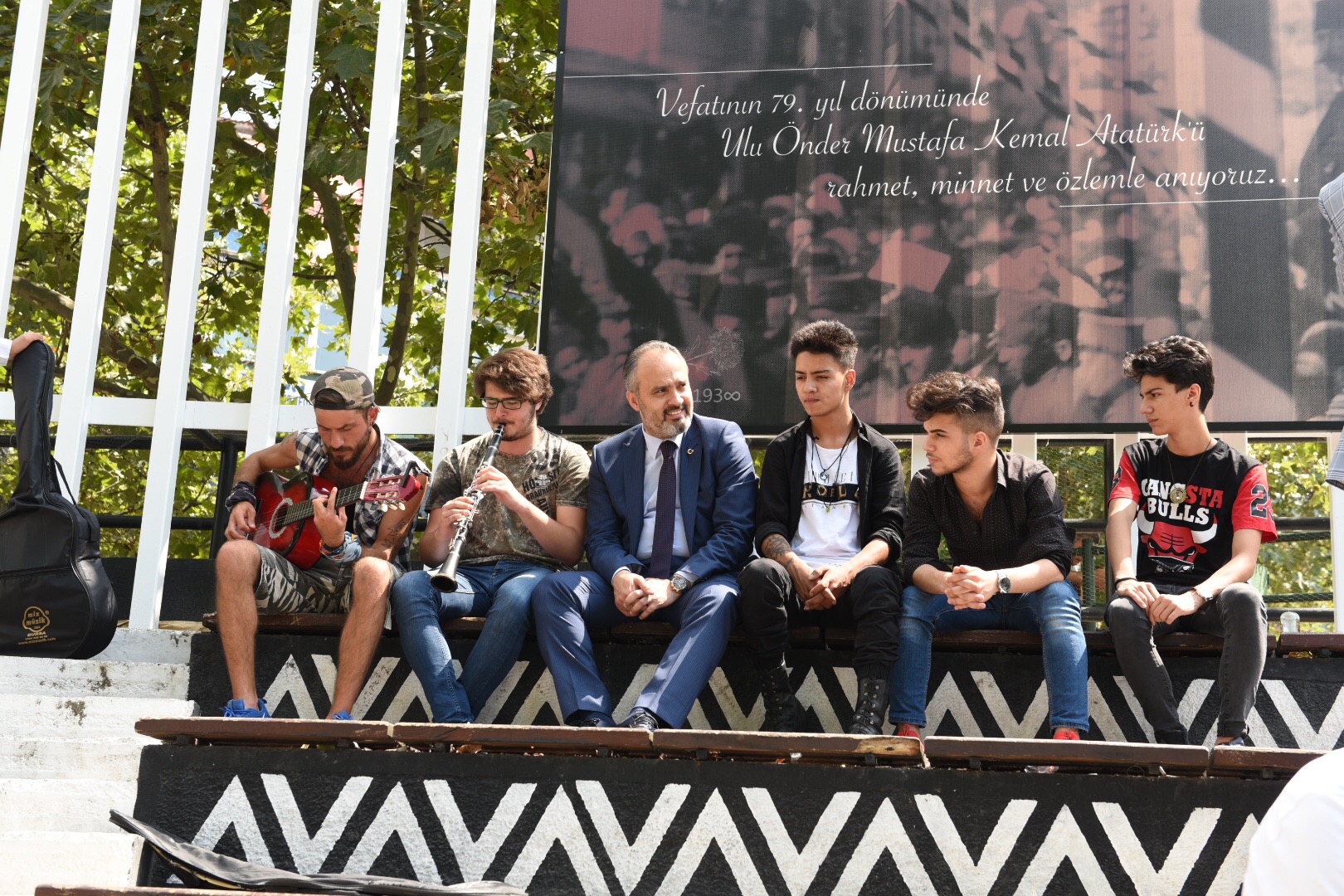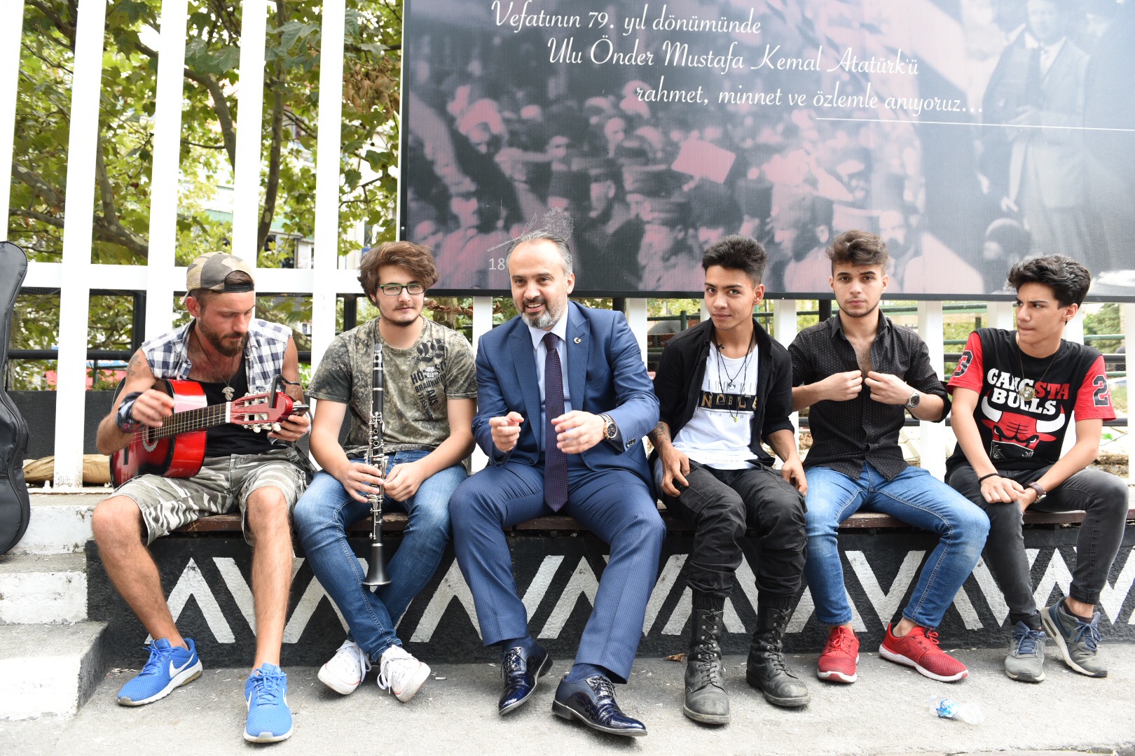 Büyükşehir Belediye Başkanı Alinur Aktaş, müze önündeki amfi tiyatroda gitar çalan gençlerle birlikte şarkı söyledi. Yoğun çalışma temposuna bu şekilde ‘müziksel’ bir mola veren Başkan Aktaş’ın hareketi, gençleri memnun etti. Bursa’nın daha yaşanabilir kent olması, bu yöndeki eksikliklerin giderilmesi için gece gündüz mesai harcayan Başkan Aktaş, Bursa Kent Müzesi’nin önünden geçerken, şarkı söyleyen gençleri görünce yanlarına gitti. Bir süre seslendirilen parçaları dinleyen Başkan Aktaş, gençlerle kısa bir müzik sohbeti yaptı. Sokak müzisyenlerinin birlikte şarkı söyleme isteğini de geri çevirmeyen Başkan Aktaş, sevilen eserlere eşlik etti. Belediye çalışmalarına kısa bir mola veren Başkan Aktaş, etkinliğin ardından kendisine sorulan soruları cevaplayarak, Bursa ile ilgili düşüncelerini ifade etti. Başkan Aktaş, renkli görüntüler sonrasında gençlerle hatıra fotoğrafı çektirdi.