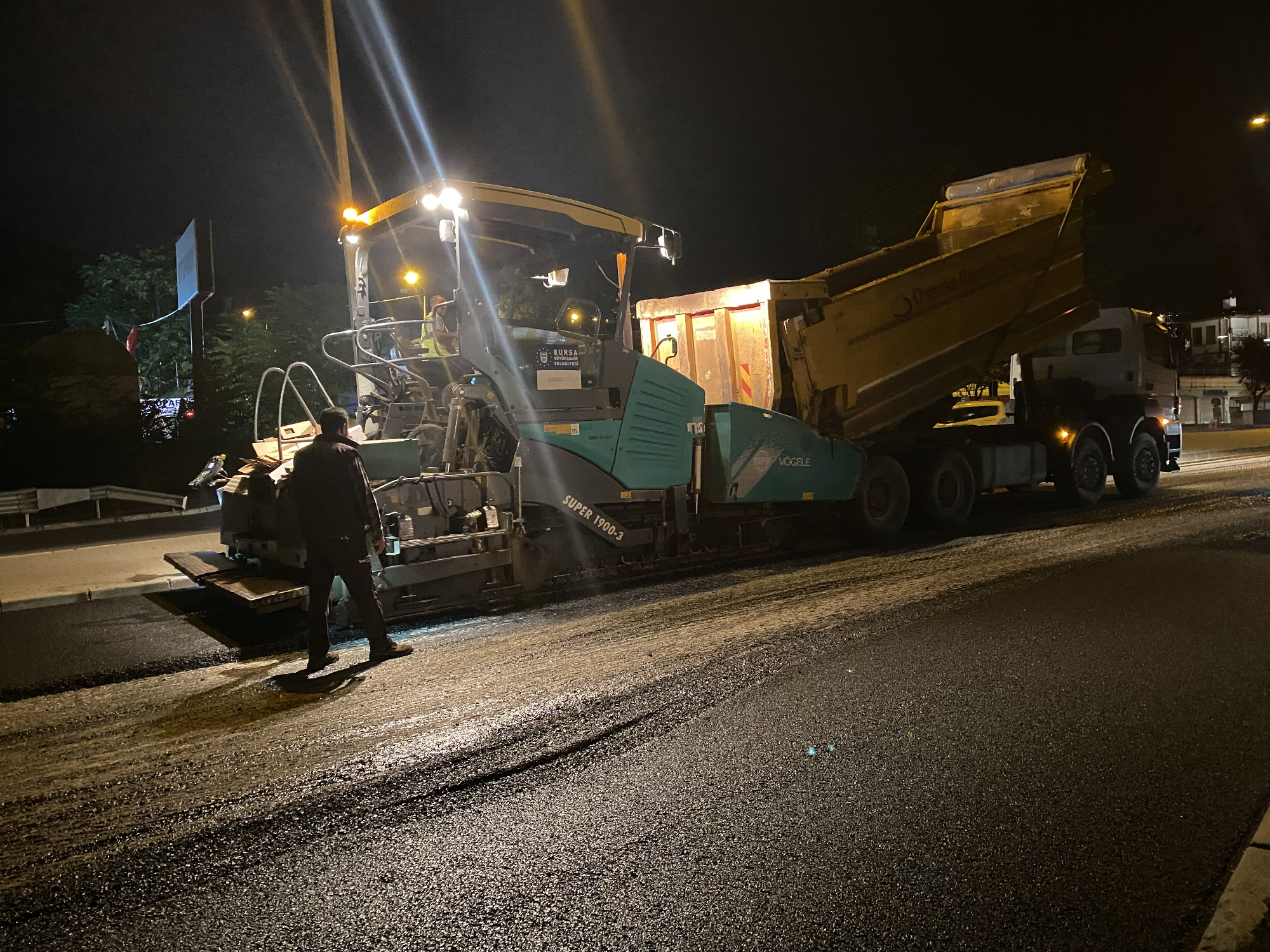 Bursa’da ulaşım sorununa köklü çözümler üretmek amacıyla raylı sistemler, yeni yollar, akıllı kavşaklar ve toplu ulaşım gibi pek çok yatırımı hayata geçiren Büyükşehir Belediyesi, 17 ilçede de mevcut yolları daha sağlıklı hale getirmek için asfalt yenileme çalışmalarına hız verdi. İlçe ve kent merkezlerindeki ana arterlerde trafiğin kesintiye uğramaması için çalışmalar gece boyu sürdürülüyor. Bu kapsamda hafta sonu Bursa-Ankara karayolunun Ankara gidiş istikametinde Yüksek İhtisas Kavşağı ile Mimar Sinan Kavşağı arasını yenileyen ekipler, çalışmalara kent merkezinde de devam ediyor.
