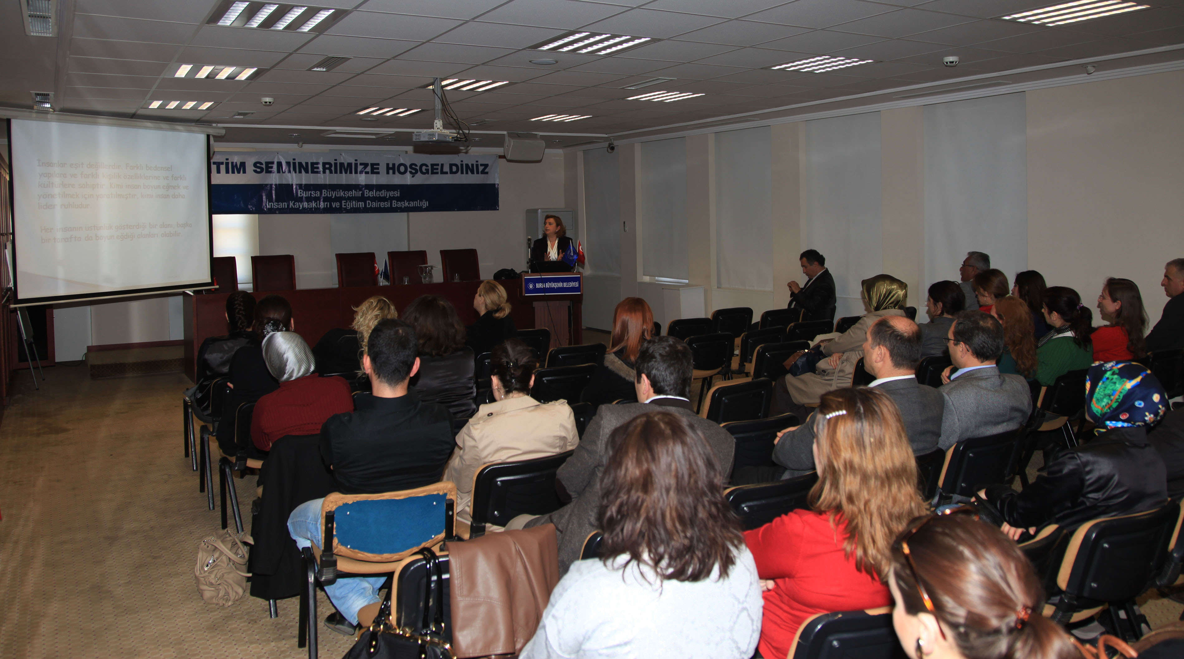Tayyare Kültür Merkezi Küçük Salon’da yapılan eğitim seminerine, genel sekreterlik, daire başkanlıkları, başkanlık makamına direkt bağlı birimler, BUSKİ, Büyükşehir Belediyespor Kulübü ve Büyükşehir Belediyesi’ne bağlı şirketlerde görevli yönetici asistanları, sekreterler ve santral memurları katıldı. Uludağ Üniversitesi Sosyal Bilimler Meslek Yüksekokulu Büro Yönetimi ve Yönetici Asistanlığı Öğretim Görevlisi Emel Selimoğlu, ‘Büro yönetimi ve sekreterlik hizmetleri’ konulu sunumunda, ilgili personele görevlerinde daha verimli olmanın yöntemi hakkında bilgiler verdi.