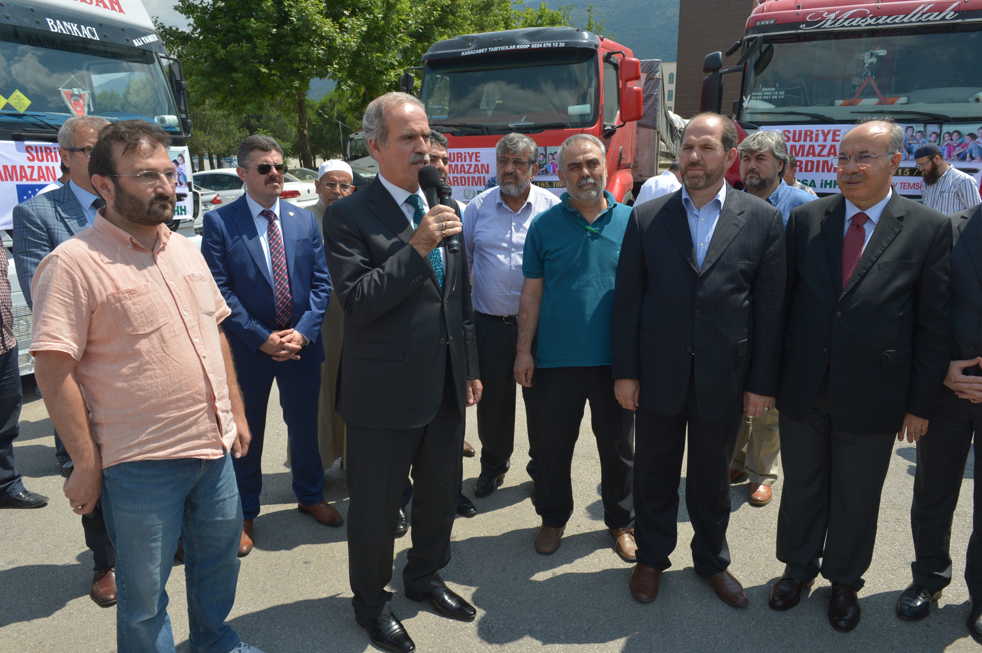 Konuşmaların ardından Suriyeli mazlumlar için hazırlanan 13 TIR’dan oluşan yardım konvoyu dualar eşliğinde bölgeye uğurlandı.