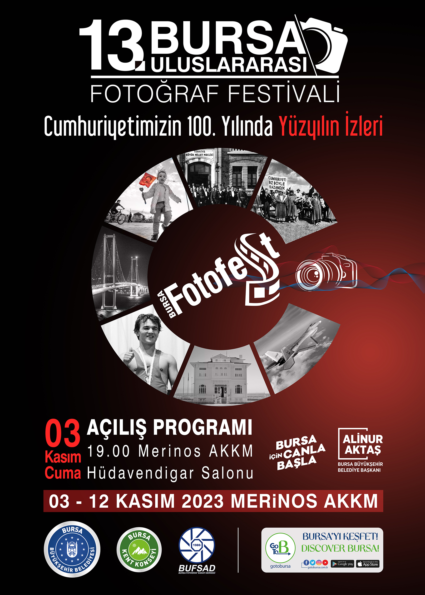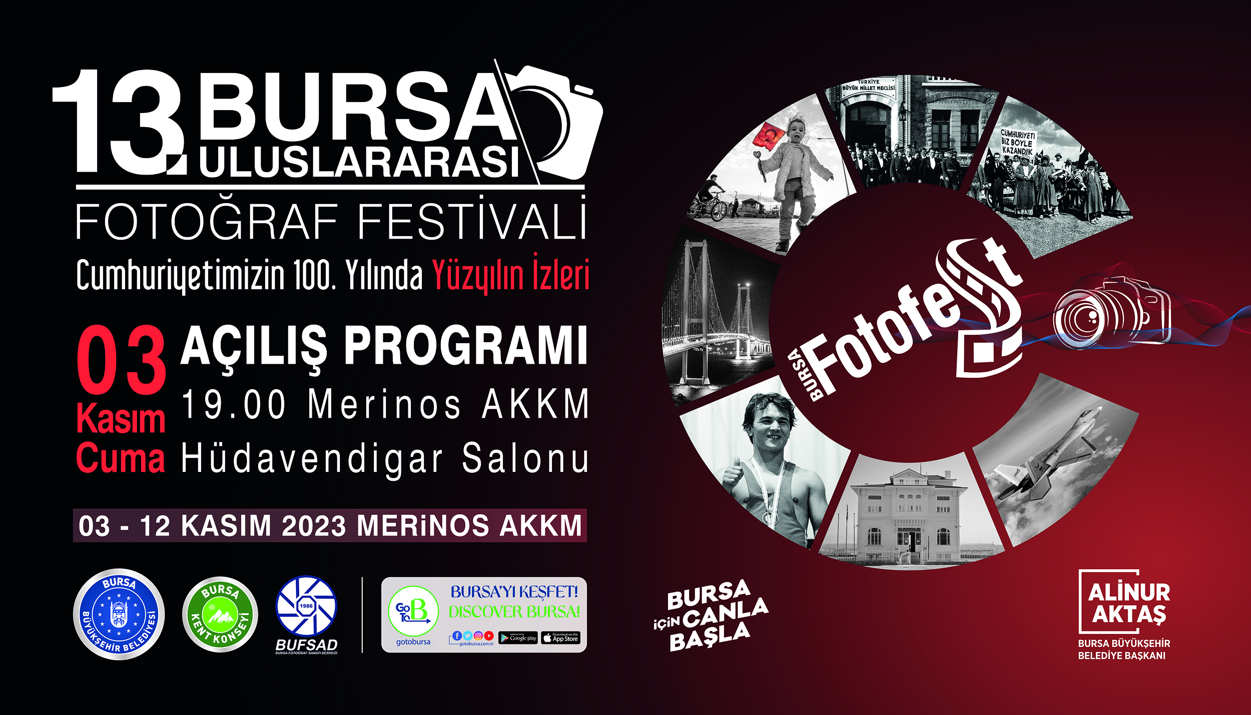 BURSA – Cumhuriyet’in 100. Yılında ‘Yüzyılın İzleri’ temasıyla bu yıl 13. kez yapılacak olan Bursa Uluslararası Fotoğraf Festivali (BursaFotoFest), 03 - 12 Kasım 2023 tarihlerinde kapılarını Merinos AKKM’de bir kez daha açıyor.
