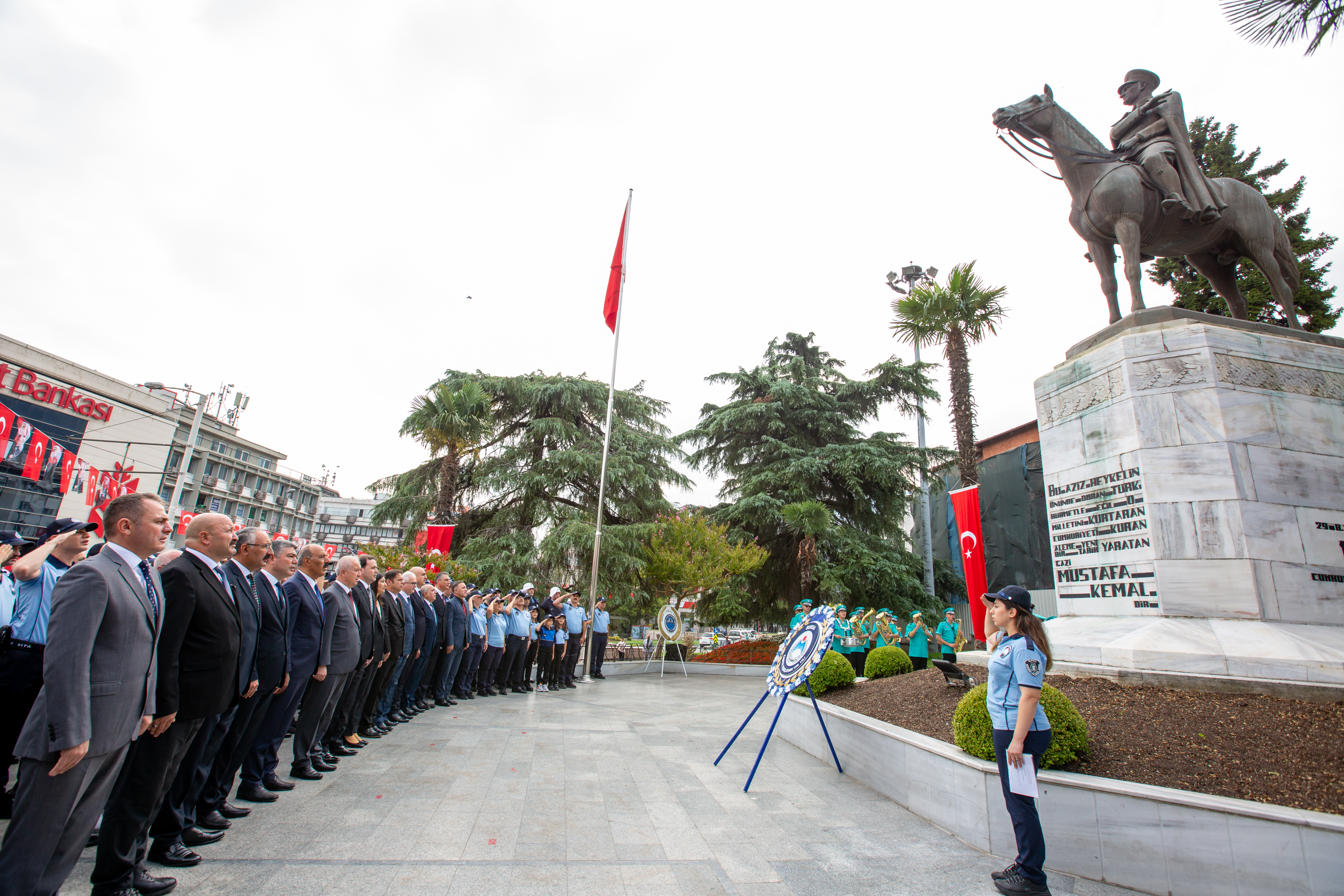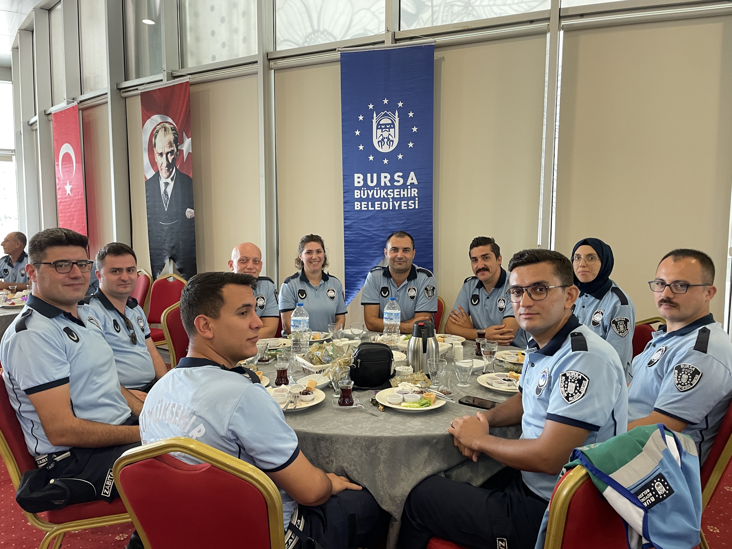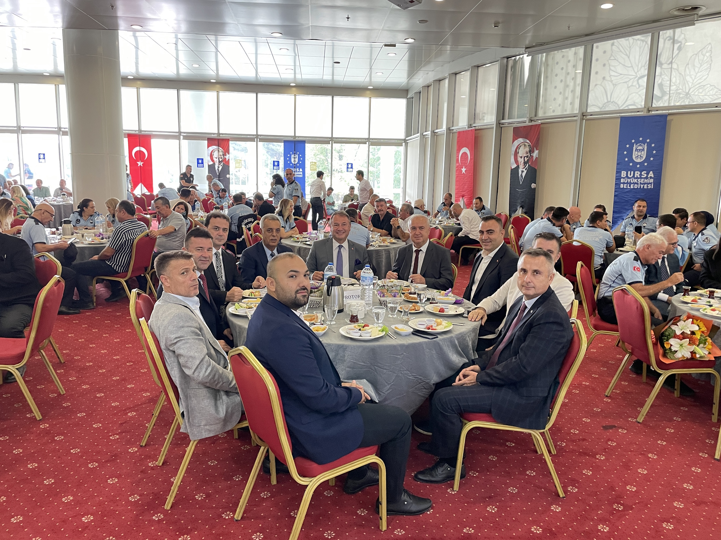 Bursa Büyükşehir Belediyesi Zabıta Dairesi Başkanlığı tarafından 1-7 Eylül Zabıta Haftası etkinlikleri kapsamında Atatürk Heykeli’ne çelenk sunuldu. Törene, Bursa Büyükşehir Belediyesi Genel Sekreter Yardımcısı Ali Altunsoy, Zabıta Dairesi Başkanı Cevdet Özgür, birim amirleri ve zabıta personeli katıldı. Daha sonra Bursa Büyükşehir Belediyesi tarafından 17 ilçede görevli zabıta personeli için Merinos Atatürk Kongre ve Kültür Merkezi’nde kahvaltı programı düzenlendi. Bursa Büyükşehir Belediyesi Başkanvekili Mehmet Aydın Saldız, Büyükşehir Belediyesi Genel Sekreter Yardımcıları Mehmet Yıldız ve Mehmet Emin Direkçi ile daire başkanlarının da katıldığı programda konuşan Büyükşehir Belediyesi Genel Sekreter Yardımcısı Ali Altunsoy, “Zabıtanın ne kadar zor ve önemli görev üstlendiğini hepimiz biliyoruz. Sahada vatandaşla yüz yüze gelerek ortaya çıkan sorunları çözmek için mücadele ediyor. Bursa Büyükşehir Belediyesi olarak her zaman zabıta teşkilatının yanında olacağız. Nice 198 yıllar olmasını temenni ediyorum” dedi.