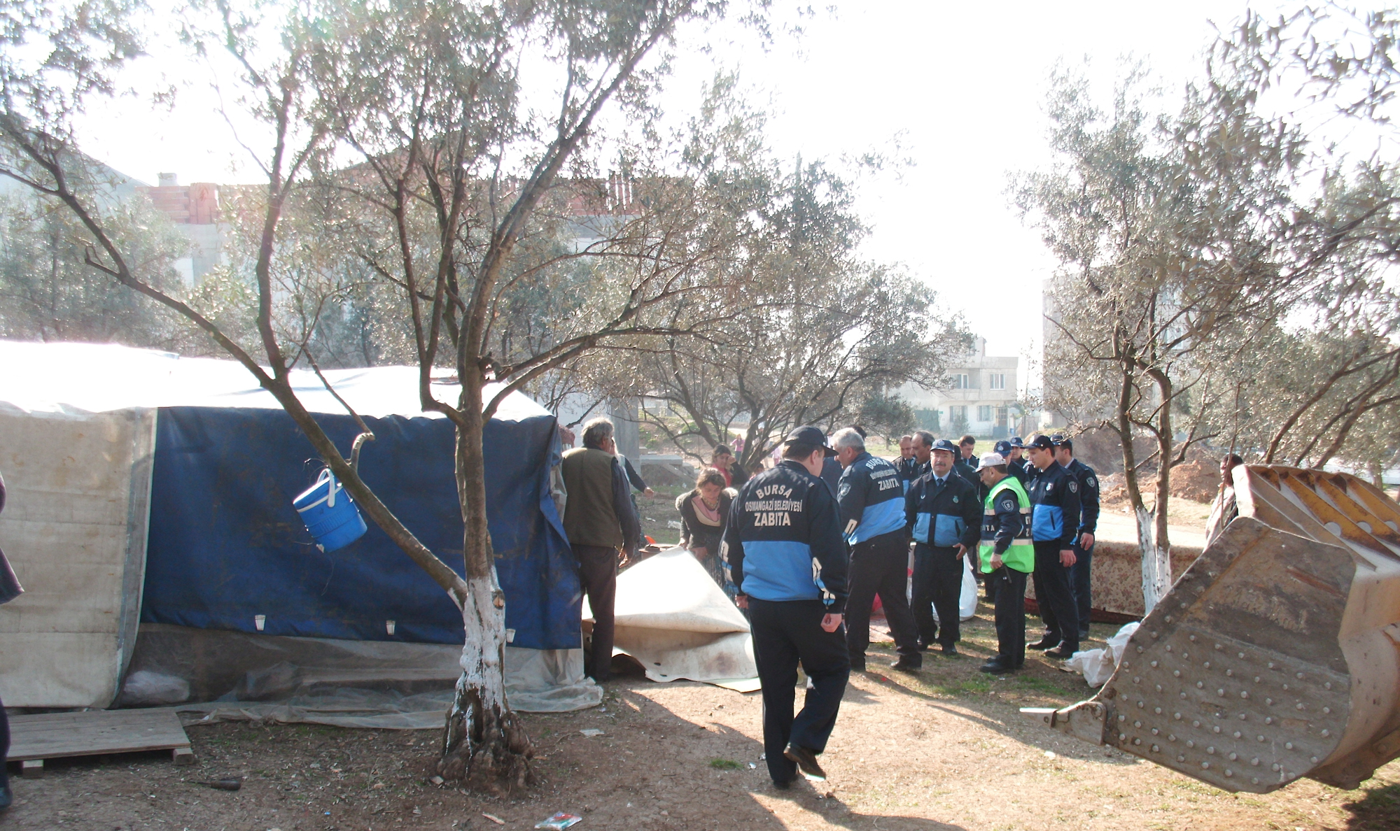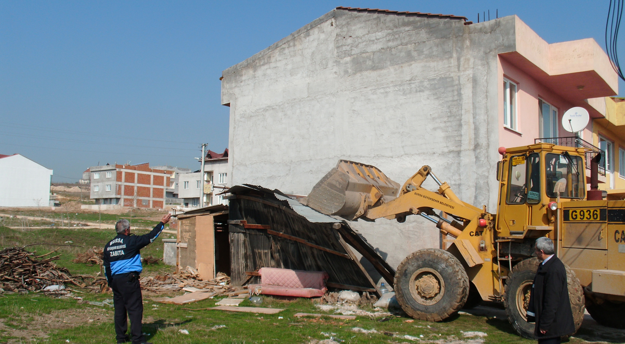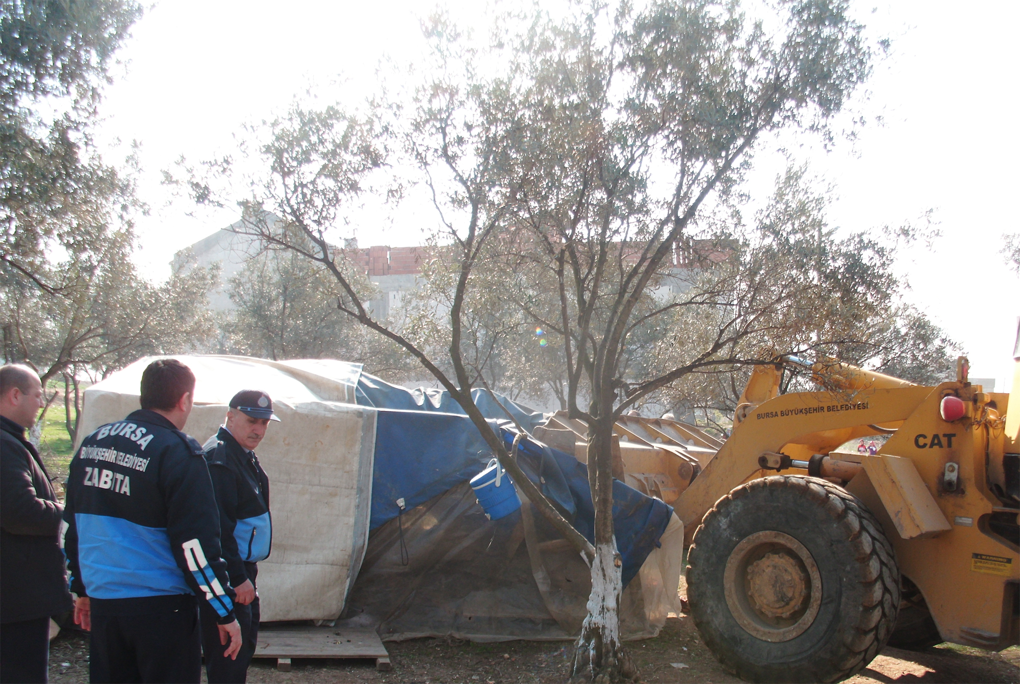 - BURSA BÜYÜKŞEHİR BELEDİYESİ ZABITA DAİRE BAŞKANLIĞI’NA BAĞLI EKİPLER, VATANDAŞLARDAN GELEN ŞİKAYETLER ÜZERİNE YUNUSELİ MAHALLESİ’NDEKİ BOŞ ARSA VE ZEYTİNLİK ALANLARA ‘KONAR-GÖÇER’LER TARAFINDAN KURULAN BARAKALARI KALDIRDI.