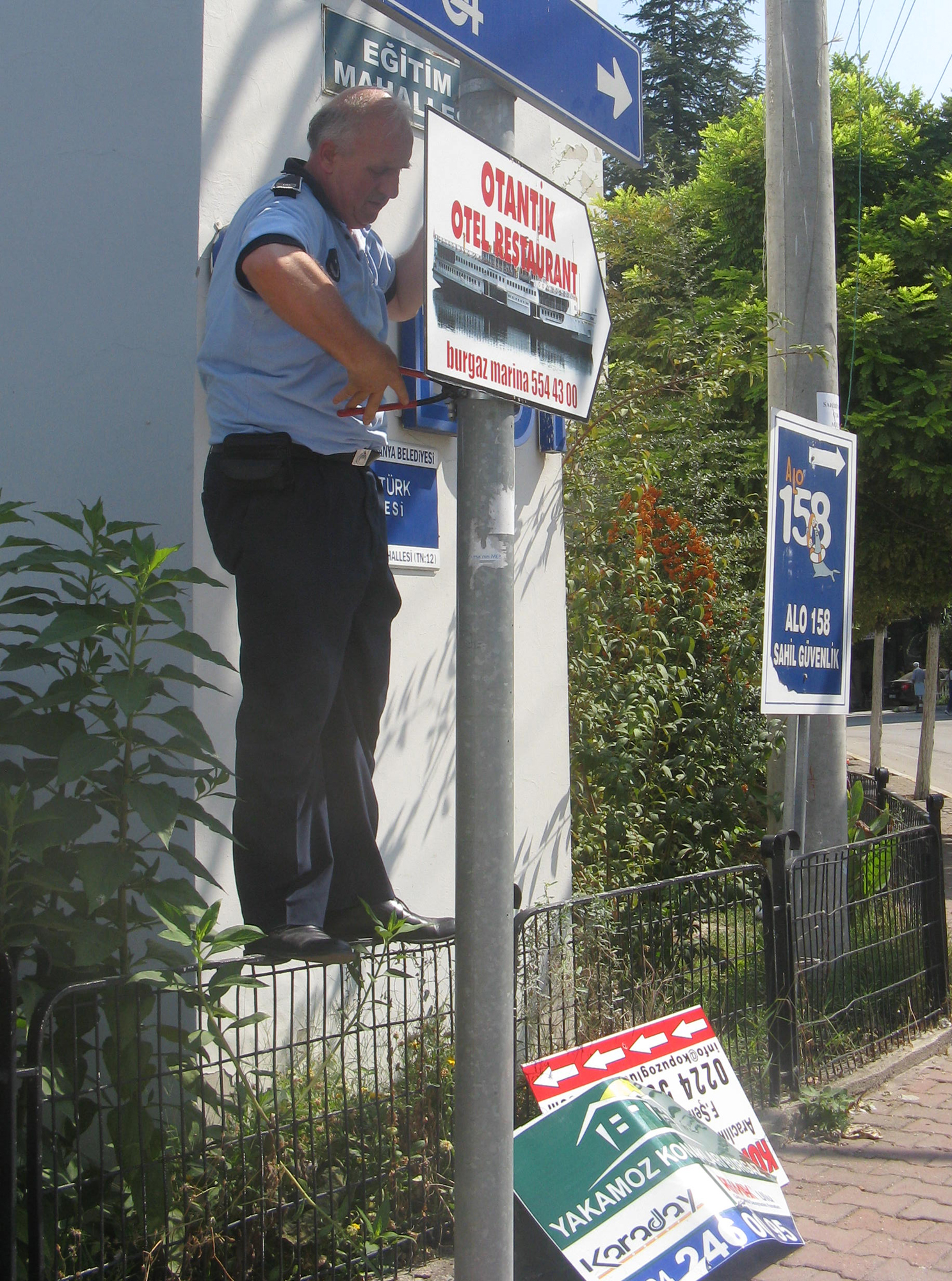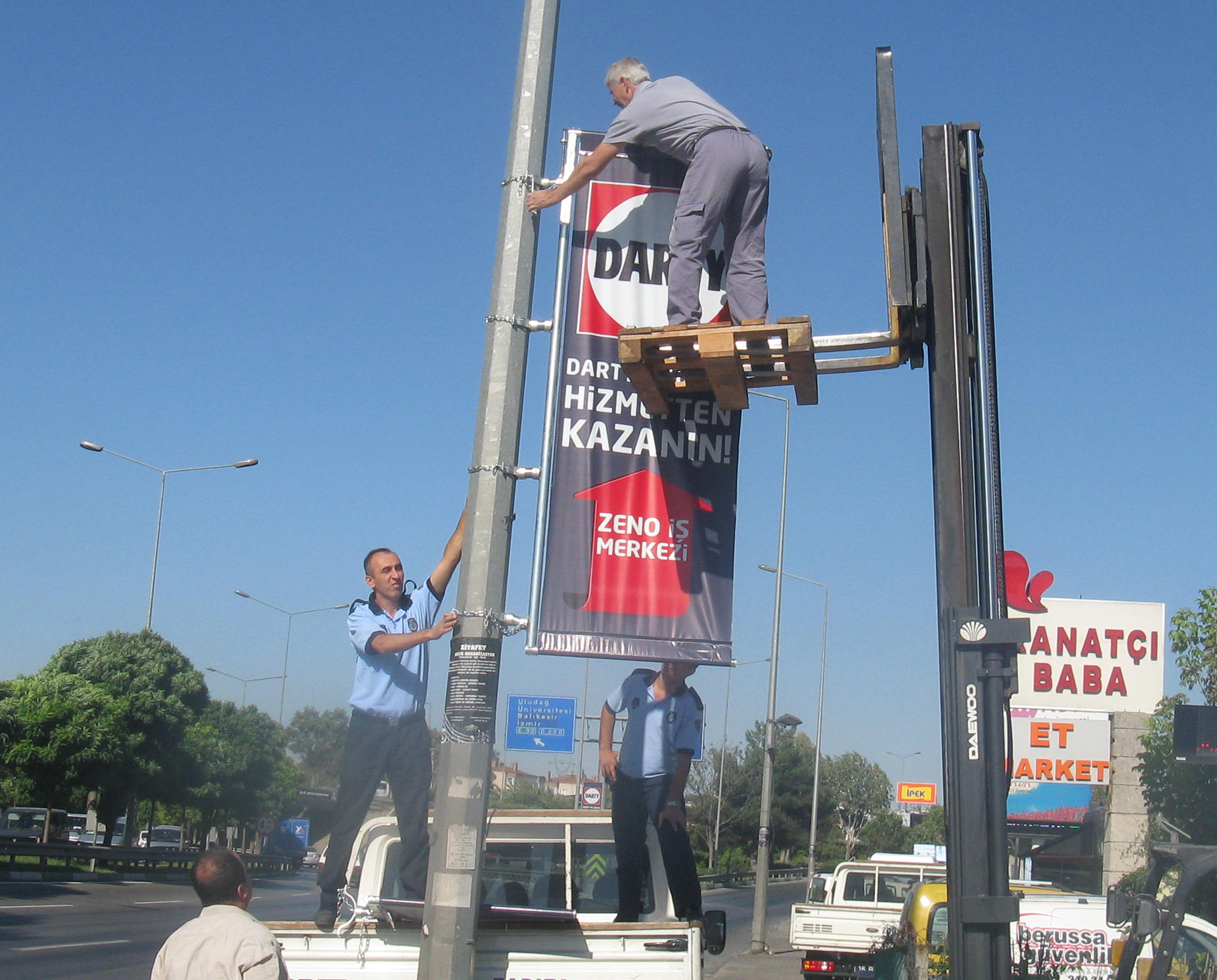 Büyükşehir Belediyesi Zabıta Daire Başkanlığı’na bağlı ekipleri şehrin muhtelif yerlerine izin alınmadan asılan reklam amaçlı yüzlerce pano ile afişi yerlerinden sökerek topladı. Periyodik olarak 2 araçla denetimlerini sürdüren 6 kişilik zabıta ekibi özellikle cadde kenarları ve kavşaklarla sürücülerin görüş mesafesini engelleyen afişleri de kaldırarak, trafiği daha güvenli hale getirdi. Zabıta Daire Başkanlığı yetkilileri, araç parkına ve yaya yoluna engel olan, çevre ve görüntü kirliliği oluşturan afiş ile pankartlara karşı mücadelenin bundan sonra da devam edeceğini belirtti. Reklam çalışması yapacak işletmelerin belediyeye müracaat etmesi istenirken, yasalara ve kent estetiğine uygun olmayan şekilde kentin çeşitli noktalarına asılan tabela ve afişlerin bundan sonra da kaldırılacağı ve bu tabelaları koyan işletmelere ise cezai işlem uygulanacağı açıklandı.