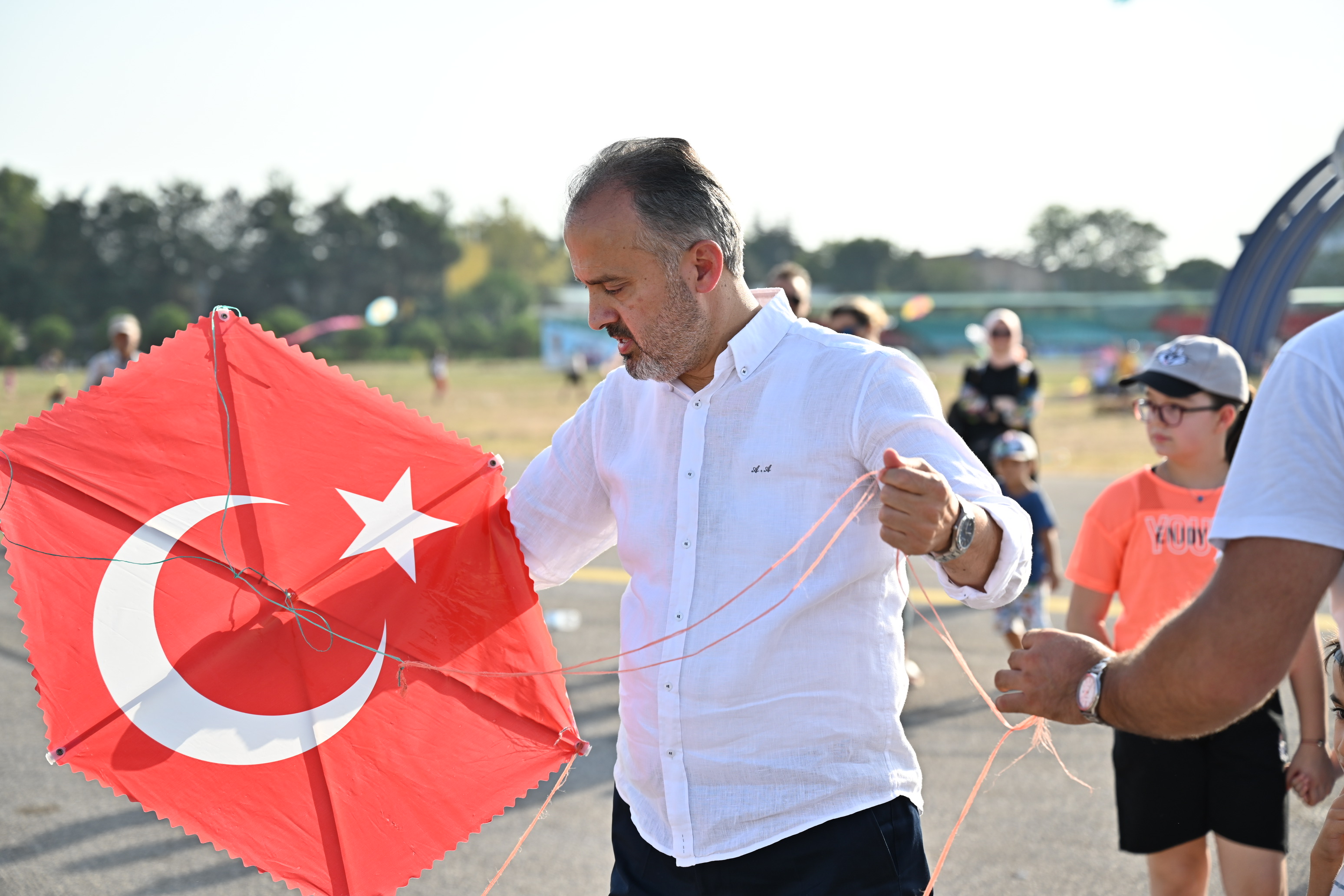 Tüm Bursalıların Zafer Bayramı’nı kutlayan Başkan Aktaş, “Gazi Mustafa Kemal Atatürk ve aziz şehitlerimizi, o dönemin kahramanlarını rahmetle ve minnetle anıyorum. Bugün burada gerçekten özgür bir şekilde, ülkemizde, şehrimizde rahat bir şekilde yaşıyorsak, o günkü kahramanlarımızın bunda çok büyük bir emeği var. Allah hepsinden razı olsun. Çocuklarımız burada gönüllerince eğleniyorlar. Bu güvenli ortamda uçurtmalarını uçuruyorlar. ‘İstikbal göklerdedir’ demiş atamız. Bunun ispatı olarak da uçurtmalarımızı, uçurarak çocuklarımıza özgürlüğü bu farklılığı yaşatmaya çalışıyoruz. Çocuklarımızı mutlu etmek, geleceğe hazırlamak bizim olmazsa olmazımız ve bizim önceliğimiz. Bugün bunu burada yapıyor olmaktan, onların gözlerindeki ışığı görmekten son derece mutluyum” diye konuştu.