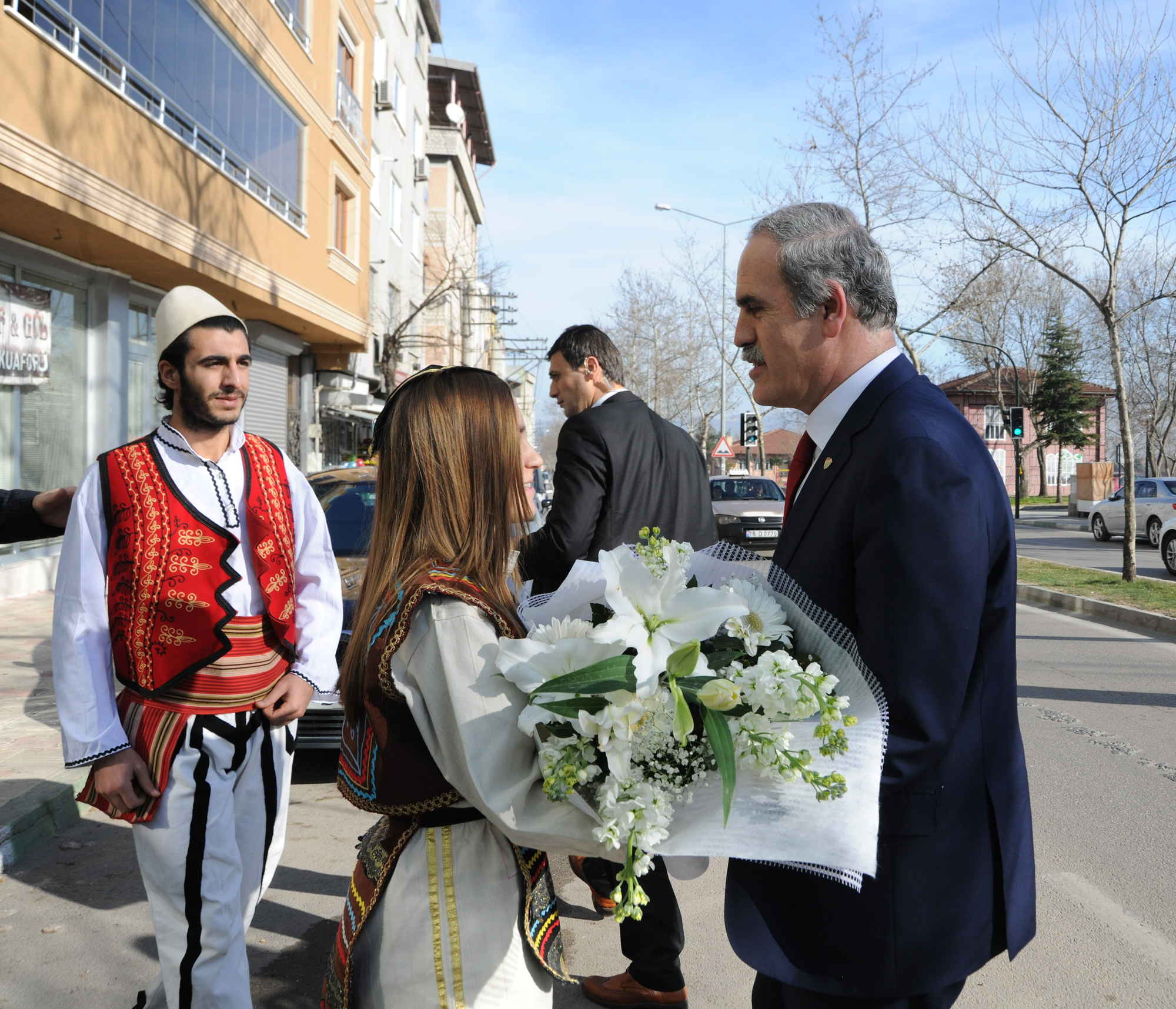 Başkan Altepe, Kosova Üsküp Türkleri Kültür ve Dayanışma Derneği’ni ziyaret etti. Zafer Mahallesi’ndeki dernek binasına girişte Kosova’nın Bursa fahri konsolosu Fahrettin Gülener ile Kosova Üsküp Türkleri Kültür ve Dayanışma Derneği Başkanı Recep Gündüz tarafından karşılanan Başkan Altepe’ye, yöresel giysili Arnavut çocukları çiçek takdim etti. Dernek üyelerinin yoğun ilgi gösterdiği ziyarette Başkan Altepe’ye Arnavut böreği, ayran ve hurma ikram edildi.