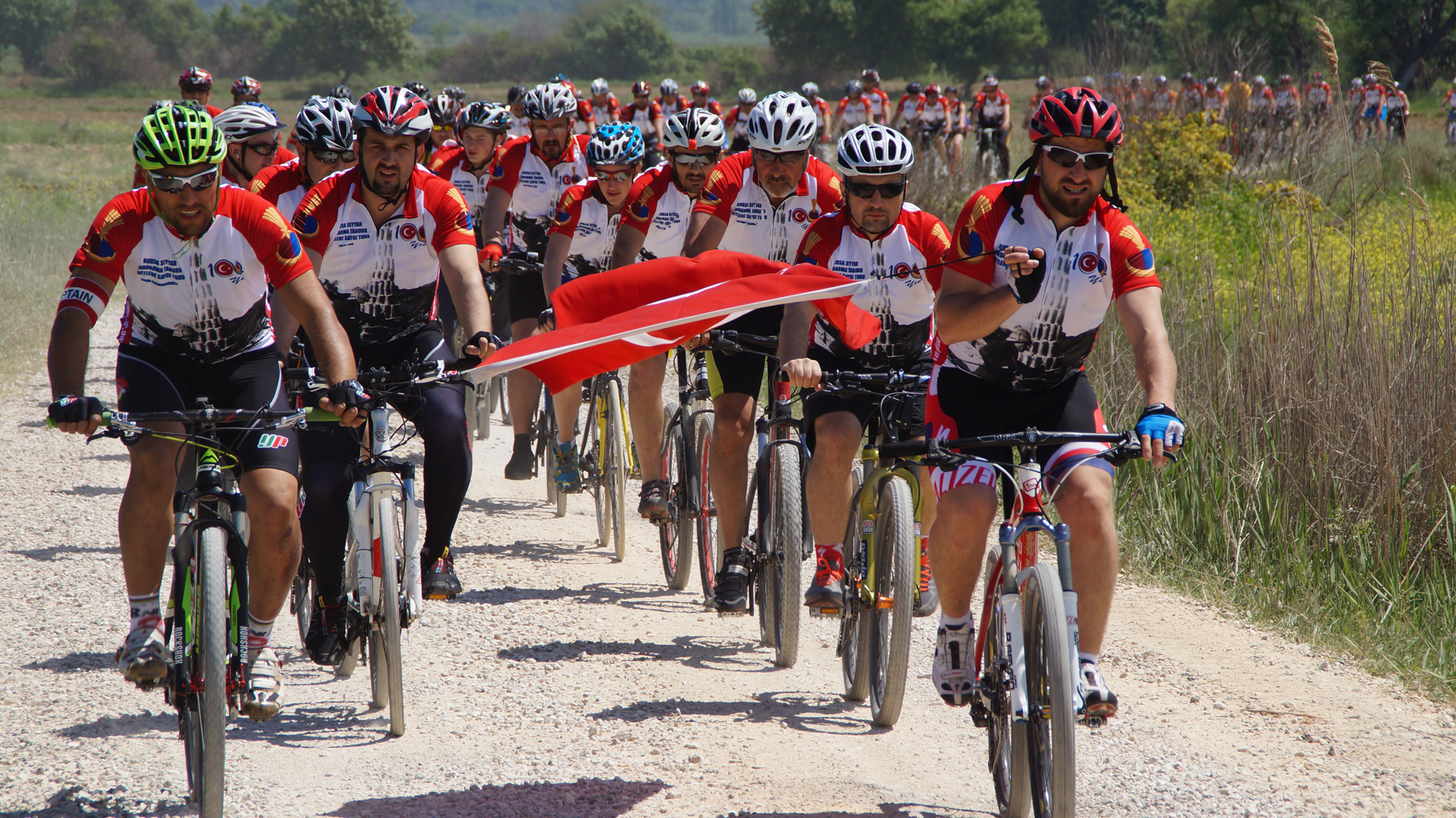 BURSA - Bursa Büyükşehir Belediyesi, Bursa Garnizon Komutanlığı ve Yeşil Pedal Bisiklet Derneği işbirliğiyle düzenlenen etkinliğe katılan 100 Bursalı bisikletçi, pedal çevirerek Büyükşehir Belediyesi tarafından restore edilen Gelibolu ve Bursa Jandarma Taburu Şehitliği’ndeki atalarını andı.