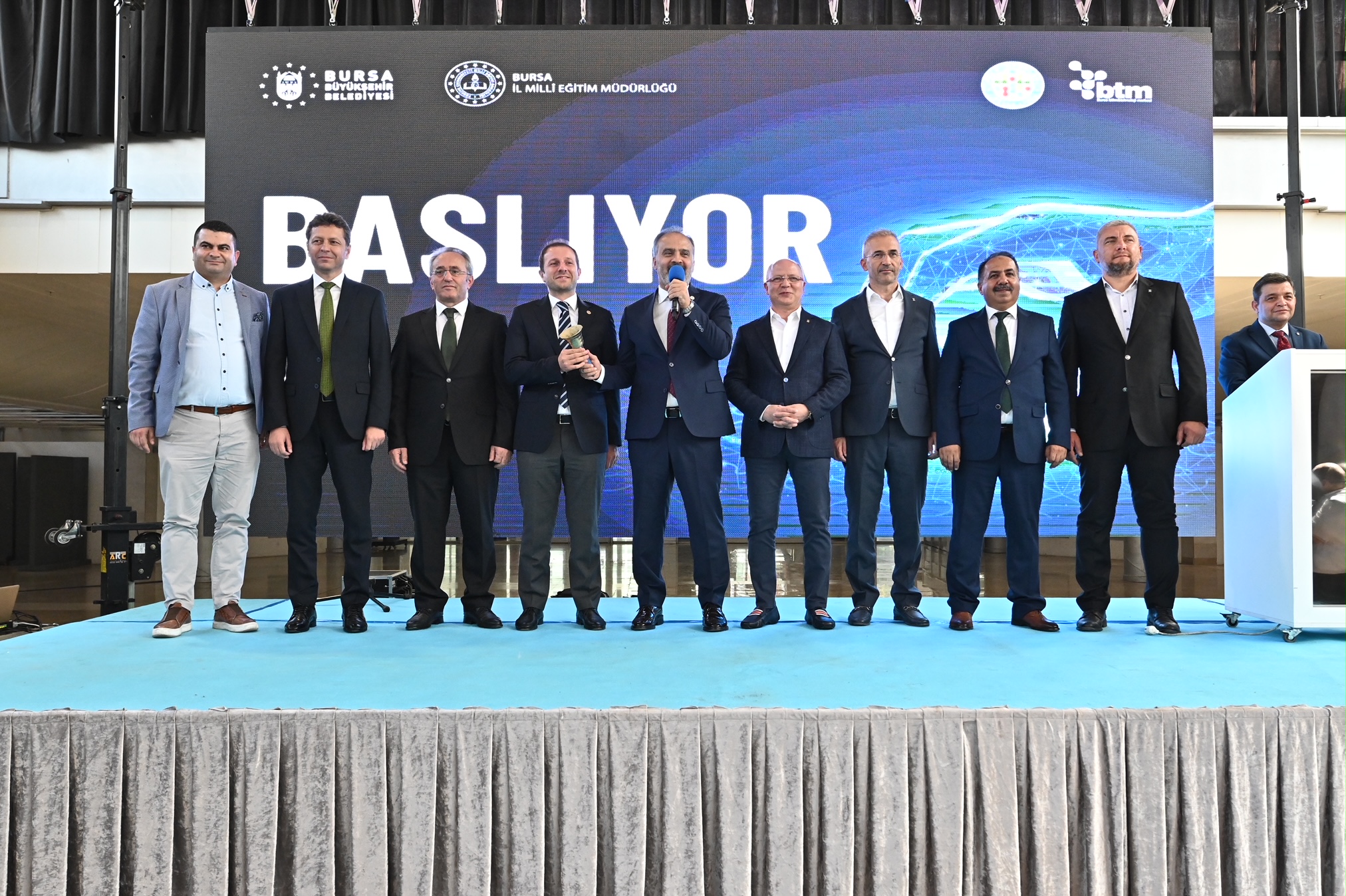 Konuşmaların ardından zili çalarak ilk karşılaşmayı başlatan Büyükşehir Belediye Başkanı Alinur Aktaş, Milletvekili Ahmet Kılıç, İl Milli Eğitim Müdürü Dr. Ahmet Alireisoğlu ve AK Parti İl Başkanı Davut Gürkan, öğrencilere iyi şanslar diledi.