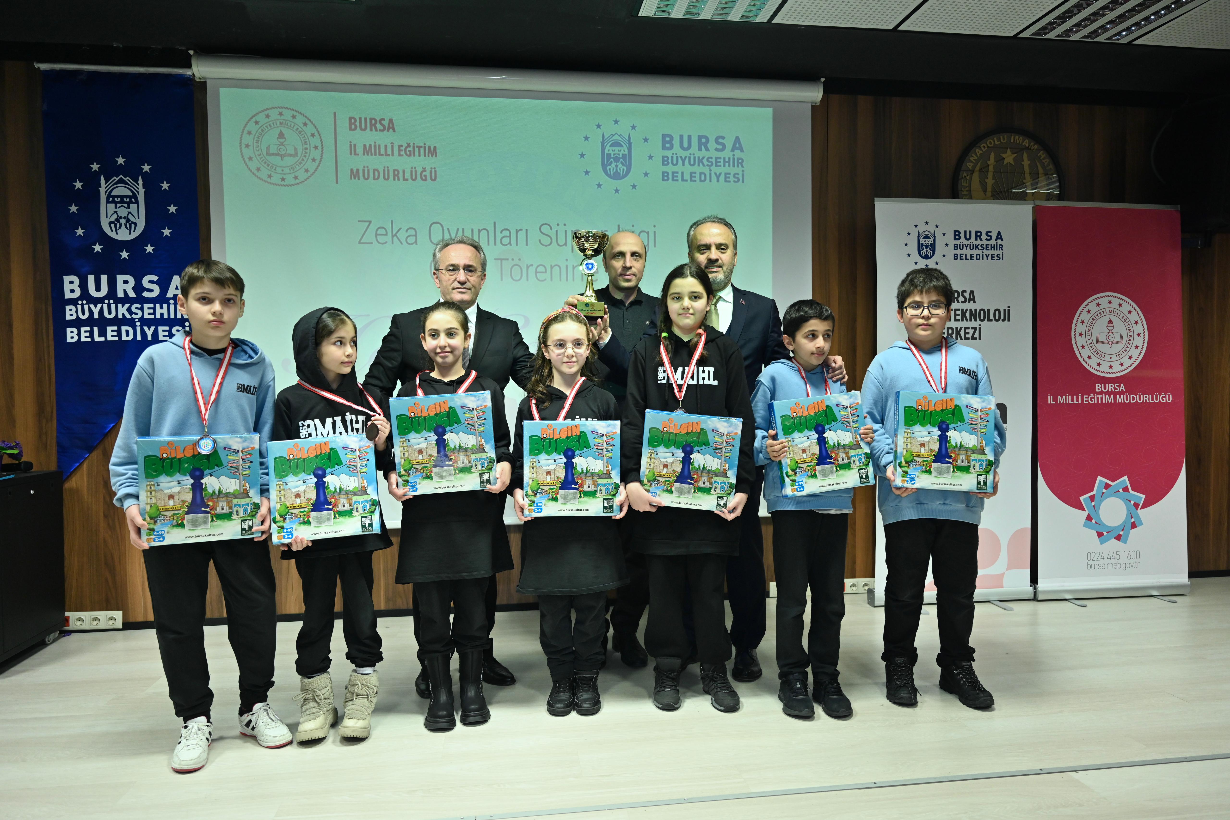 BURSA – Bursa Büyükşehir Belediyesi’nin İl Milli Eğitim Müdürlüğü işbirliği ile bu yıl ikincisini düzenlendiği, yaklaşık 4 ay süren Zeka Oyunları Süper Ligi ödül töreniyle tamamlandı. Dereceye giren öğrenciler, ödüllerini Büyükşehir Başkanı Alinur Aktaş ve İl Milli Eğitim Müdürü Ahmet Alireisoğlu’nun elinden aldı.