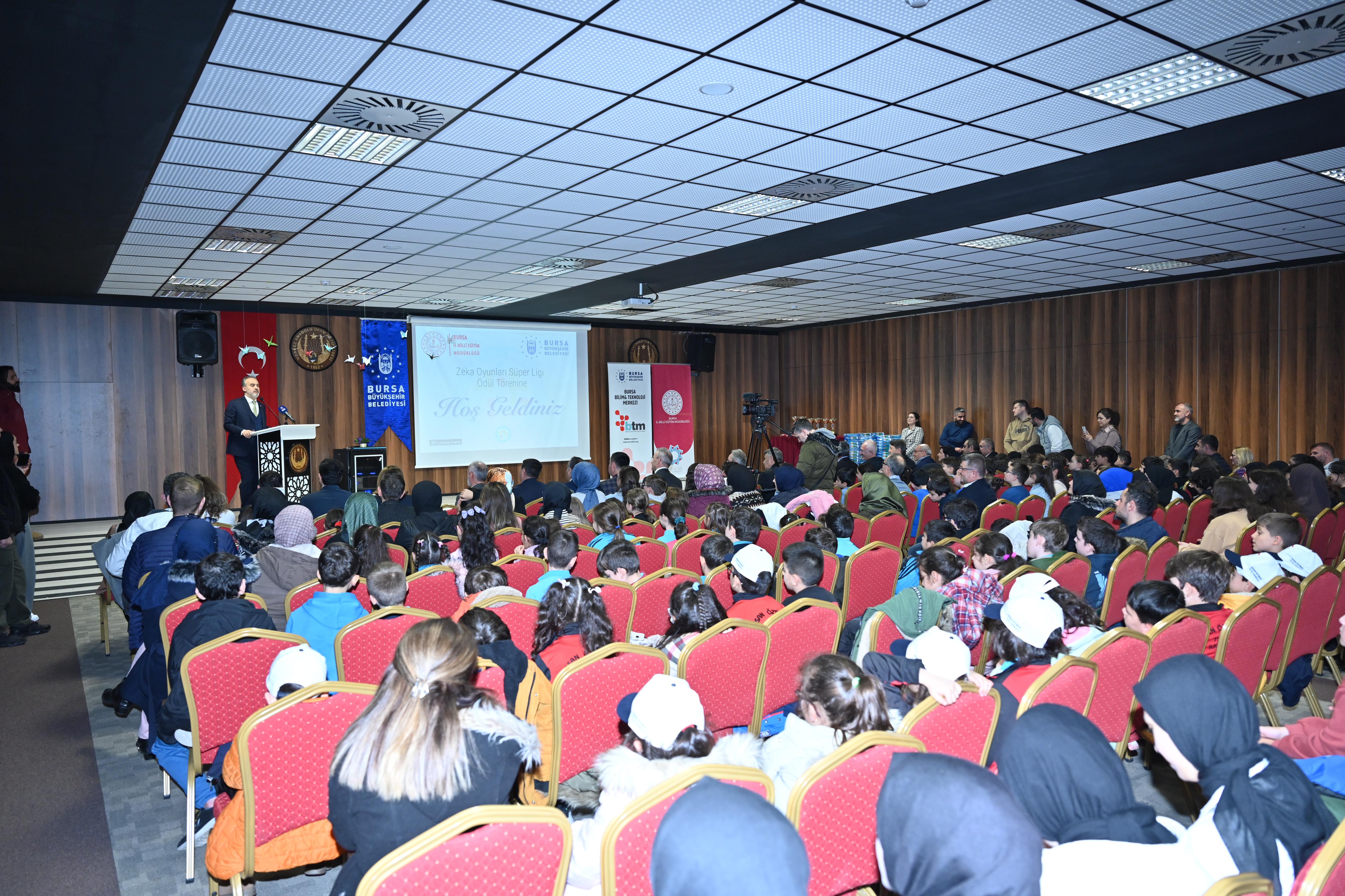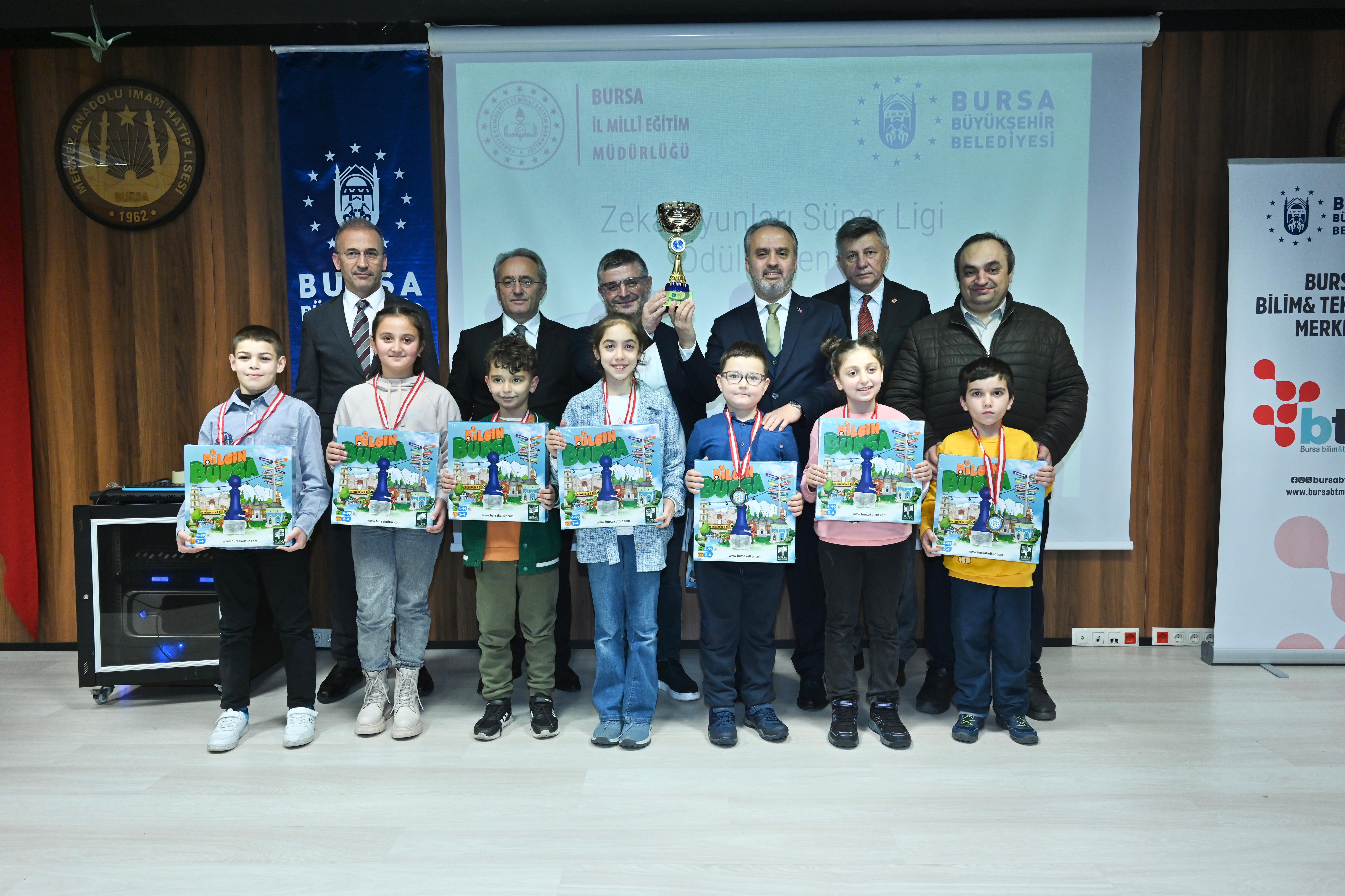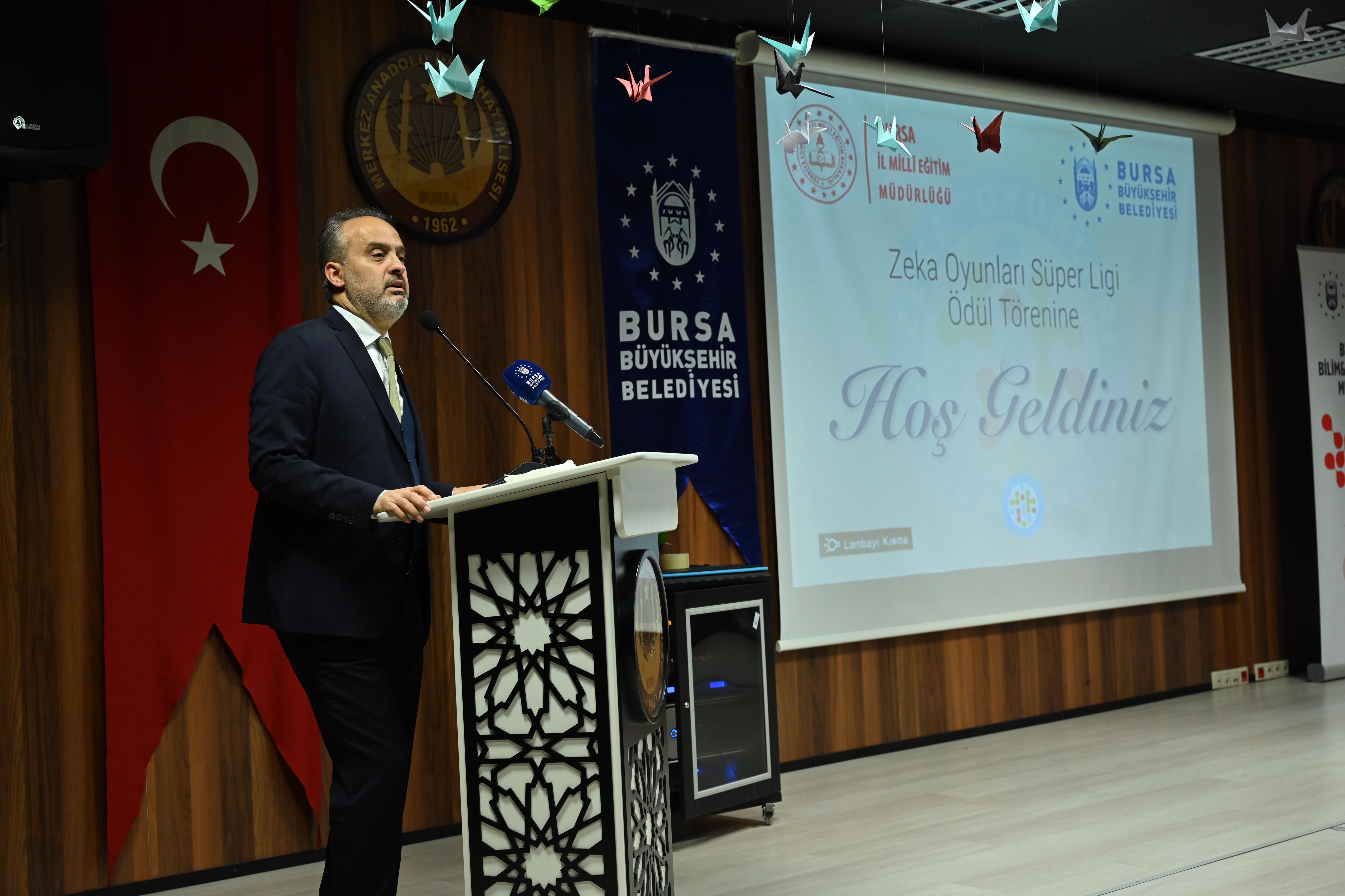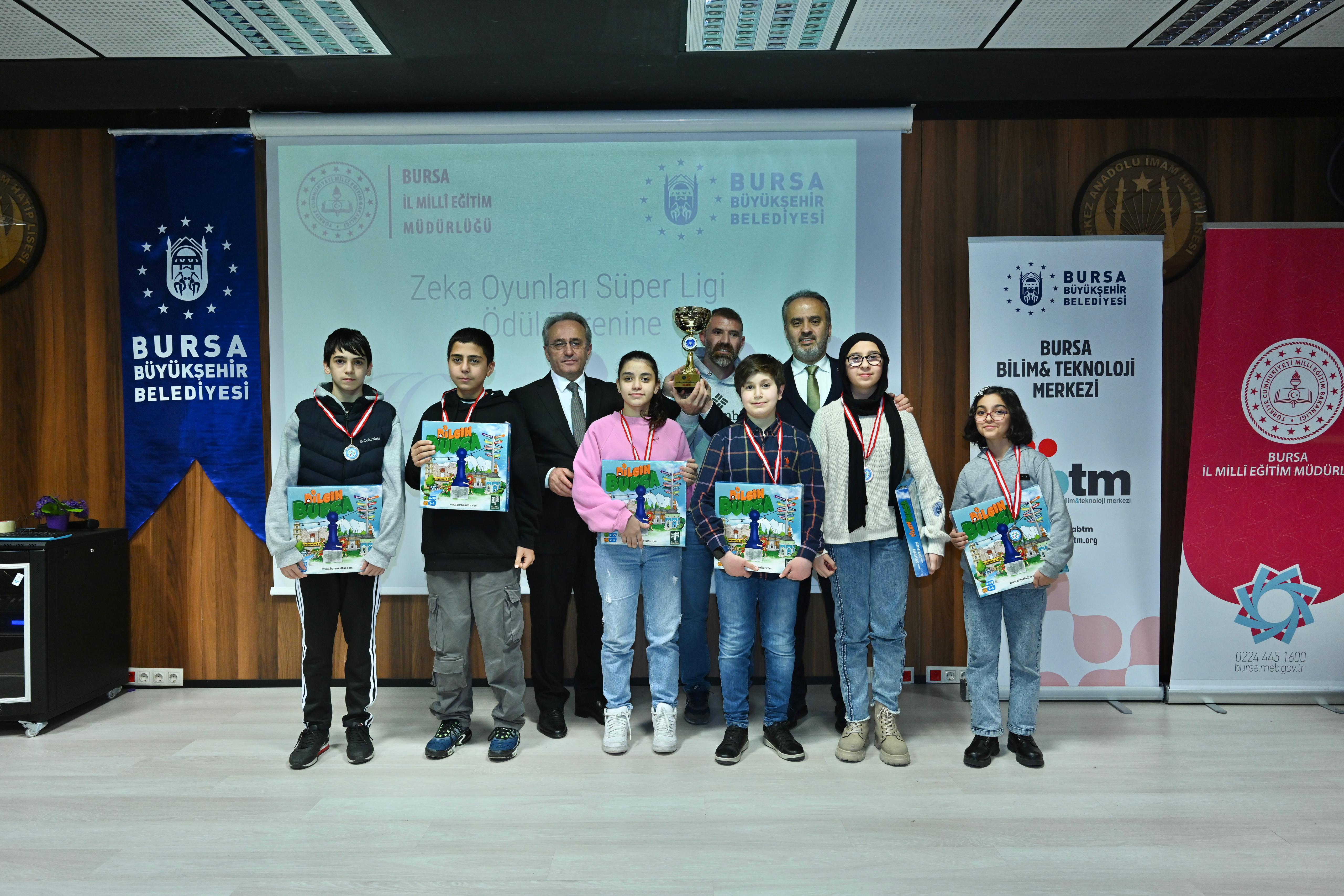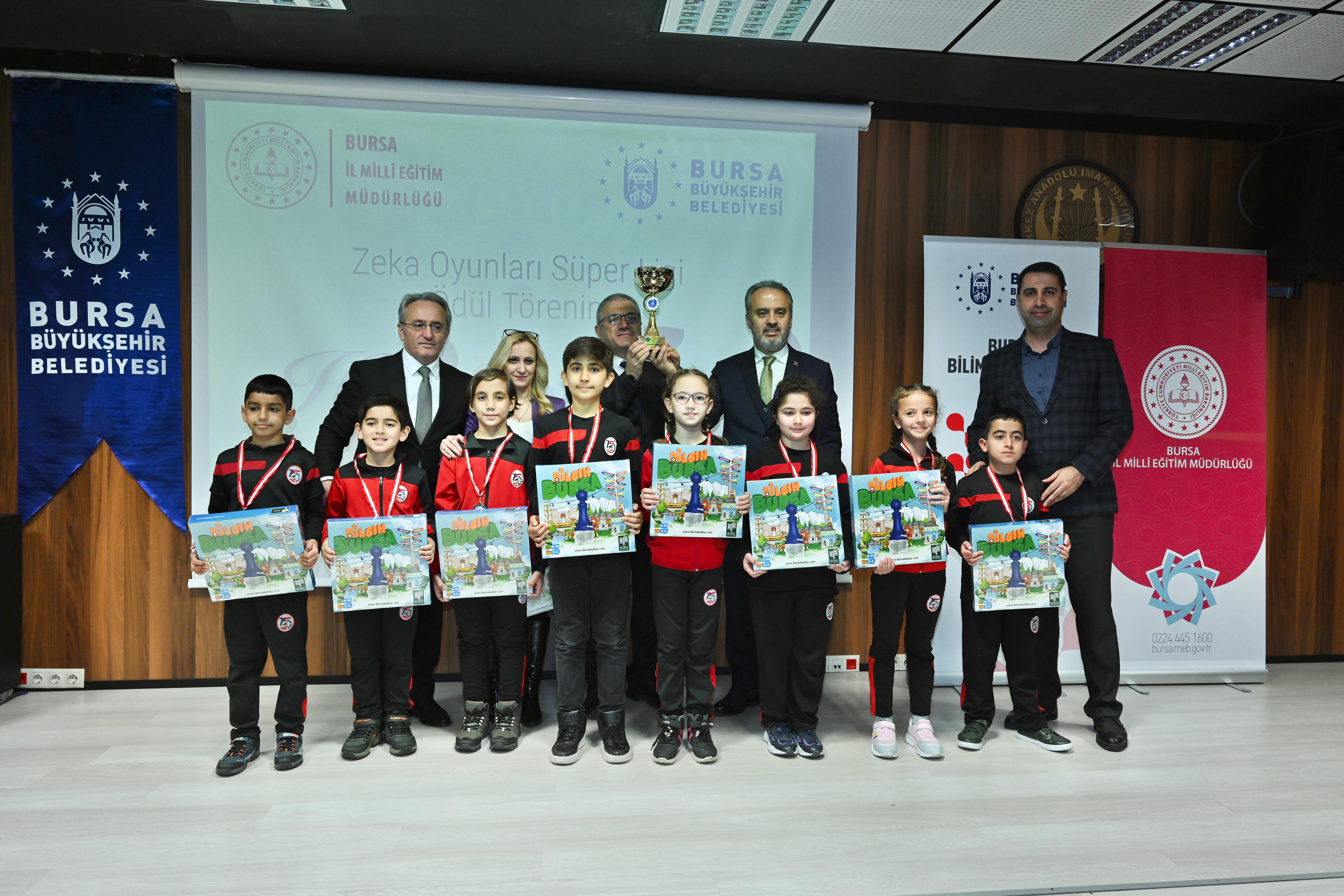 Etkinliğin ödül töreni Yıldırım Merkez Anadolu İmam Hatip Lisesi’nde Bursa Büyükşehir Belediye Başkanı Alinur Aktaş ve İl Milli Eğitim Müdürü Ahmet Alireisoğlu’nun katılımıyla yapıldı. Ödül töreninde konuşan Bursa Büyükşehir Belediye Başkanı Alinur Aktaş, “Oyun çok ciddi bir iş aslında. Çünkü bugün bu oyunları oynayan çocuklar, yarın öbür gün ülkeyi yönetecek. Dolayısıyla bugün onların oynadıkları oyunlar gelişimleri açısından kıymetli ve değerli. Çocuklarımızın fiziksel, zihinsel, sosyal ve bilişsel becerilerini desteklemek adına çağımızın şartlarına uygun olsun diye geçen yıl başlattığımız Zeka Oyunları Süper Ligi’nin ikincisi tamamladık. Derece elde eden tüm çocuklarımızı tebrik ediyorum” dedi.