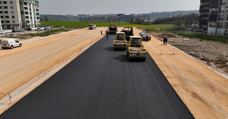Bursa Büyükşehir Belediyesi, kentin yeni yerleşim bölgelerinde açılan yollardaki asfaltlama çalışmalarını sürdürüyor.