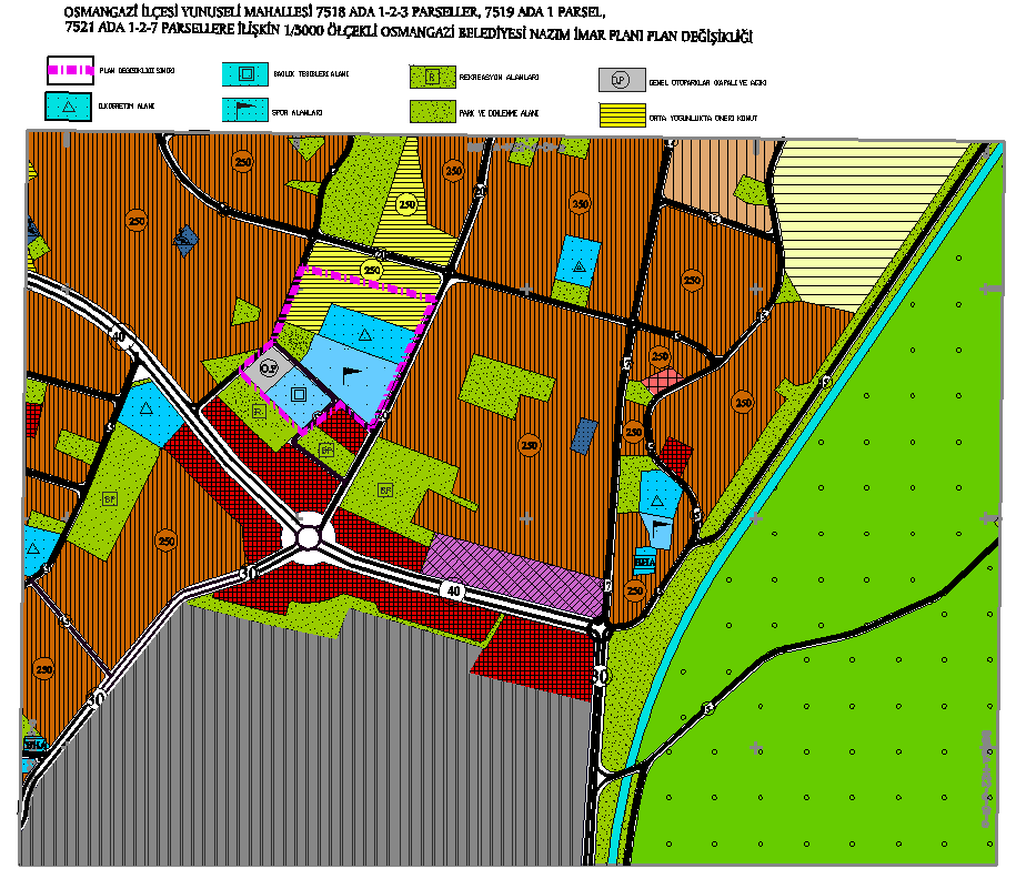 | Osmangazi İlçesi, Yunuseli Mah. 7518 ada, 1-2-3 parseller, 7519 ada, 1 parsel, 7520 ada, 1-2-3 parseller, 7521 ada, 1-2 parseller ile ilgili 1/5000 ölçekli Osmangazi Nazım İmar Planı Değişikliği |