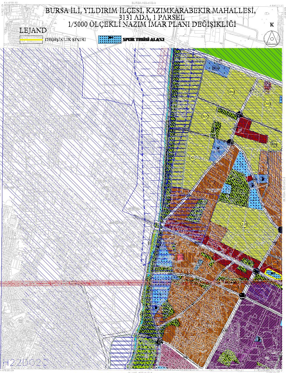 | Yıldırım İlçesi, Kazımkarabekir Mahallesi, 3131 ada, 1 parselin Spor Tesisi Alanına alınmasına ilişkin 1/5000 ölçekli Nazım İmar Planı değişikliği ve 1/1000 ölçekli Uygulama İmar Planı değişikliği |