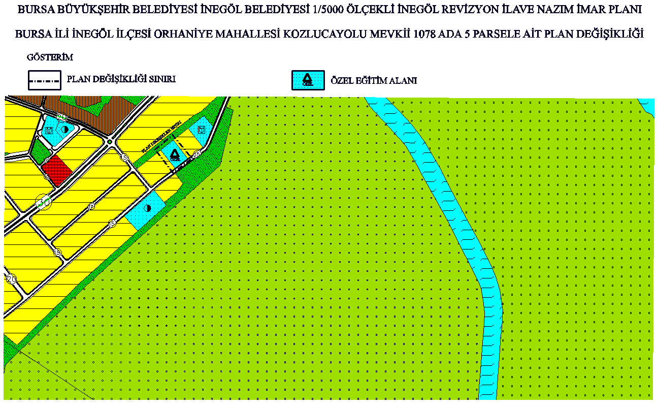 | İnegöl İlçesi, Orhaniye Mahallesi, 1078 Ada, 5 Parsel’in “Özel Eğitim Alanı”na alınmasına ilişkin 1/5000 Ölçekli İnegöl Revizyon + İlave Nazım İmar Planı değişikliği |