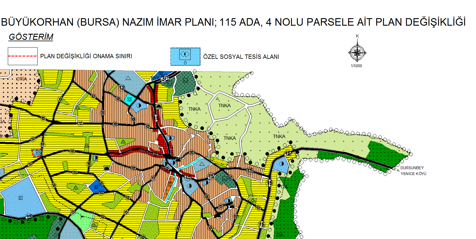| Büyükorhan İlçesi, Orhan Mahallesi, 115 ada 4 parsele ilişkin 1/5000 ölçekli Nazım İmar Planı Değişikliği |