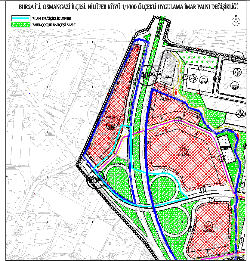 | Bursa Büyükşehir Belediye Meclisinin 11.02.2010 tarih ve 149 sayılı kararına ilişkin Bursa 2. İdare Mahkemesinin iptal ve Bursa Büyükşehir Belediye Meclisinin 13.05.2010 tarih ve 442 sayılı kararına ilişkin Bursa 2. İdare Mahkemesinin yürütmesinin durdurulması kararları doğrultusunda, Bursa İli, Osmangazi İlçesi, Nilüferköy, H21b24b Pafta, Bademli Kavşağına ilişkin, Nilüfer Köyü 1/1000 Ölçekli Uygulama İmar Planı Değişikliği |