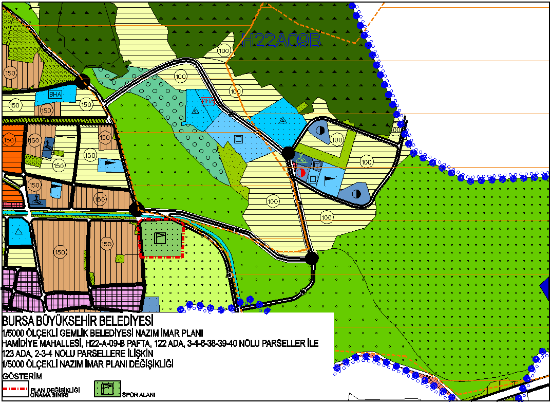 | Gemlik ilçesi, Hamidiye mahallesi, 122 ada, 3-4-6-38-39-40 parseller ve 123 ada, 2-3-4 parsellerin spor alanına alınmasına ilişkin 1/5000 ölçekli Gemlik Nazım İmar Planı değişikliği |