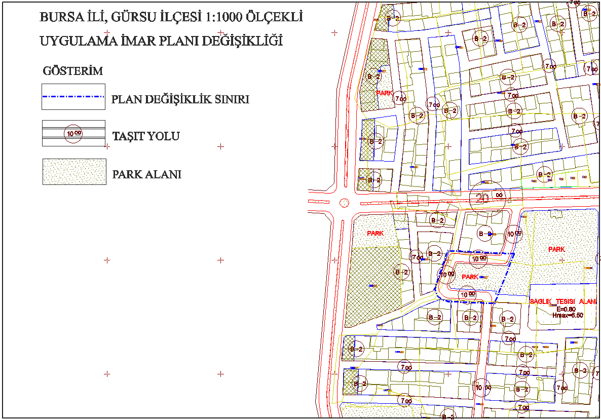 | Bursa Büyükşehir Belediye Meclisinin 13.11.2014/1246 sayılı kararı ile onaylı Gürsu İlçesi Zafer Mah. 217 ada 2 parsel Belediye Hizmet Alanı (Tarım Ürünleri İşleme Tesisi) olmasına ilişkin 1/1000 Ölçekli Gürsu Uygulama İmar Planı Değişikliği |