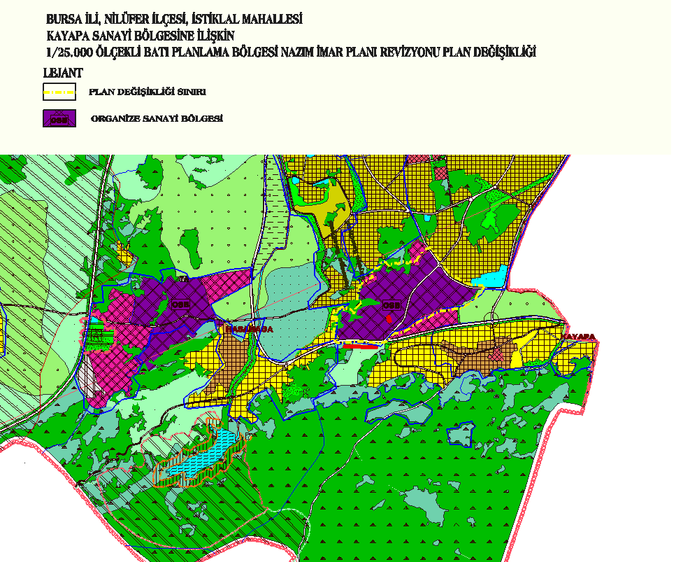 Nilüfer İlçesi Kayapa – İstiklal Mahallesi, Kayapa Sanayi Bölgesi’ne dair 1/25000 ölçekli Batı Planlama Bölgesi Nazım İmar Plan değişikliği