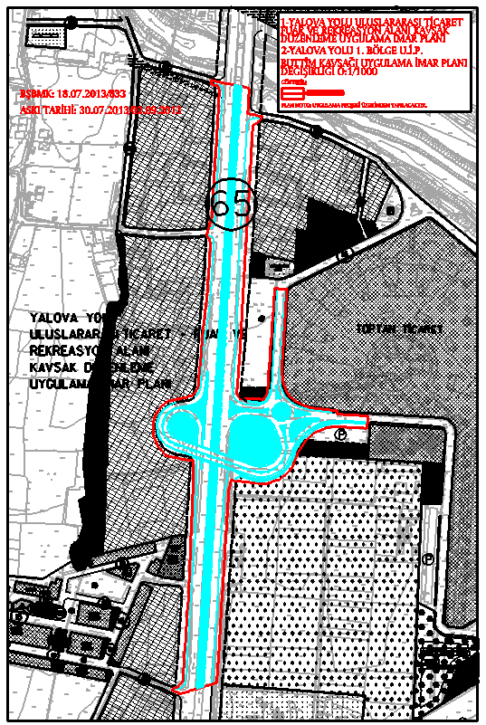 | Bursa-Yalova Devlet Karayolu üzeri BUTTİM Kavşağı Avan ve Uygulama Projelerinin Yapılması Hizmet Alım İşi kapsamındaki uygulama projeleri doğrultusunda hazırlanan 1/25.000-1/5.000-1/1.000 ölçekli İmar Planı Değişiklikleri |
