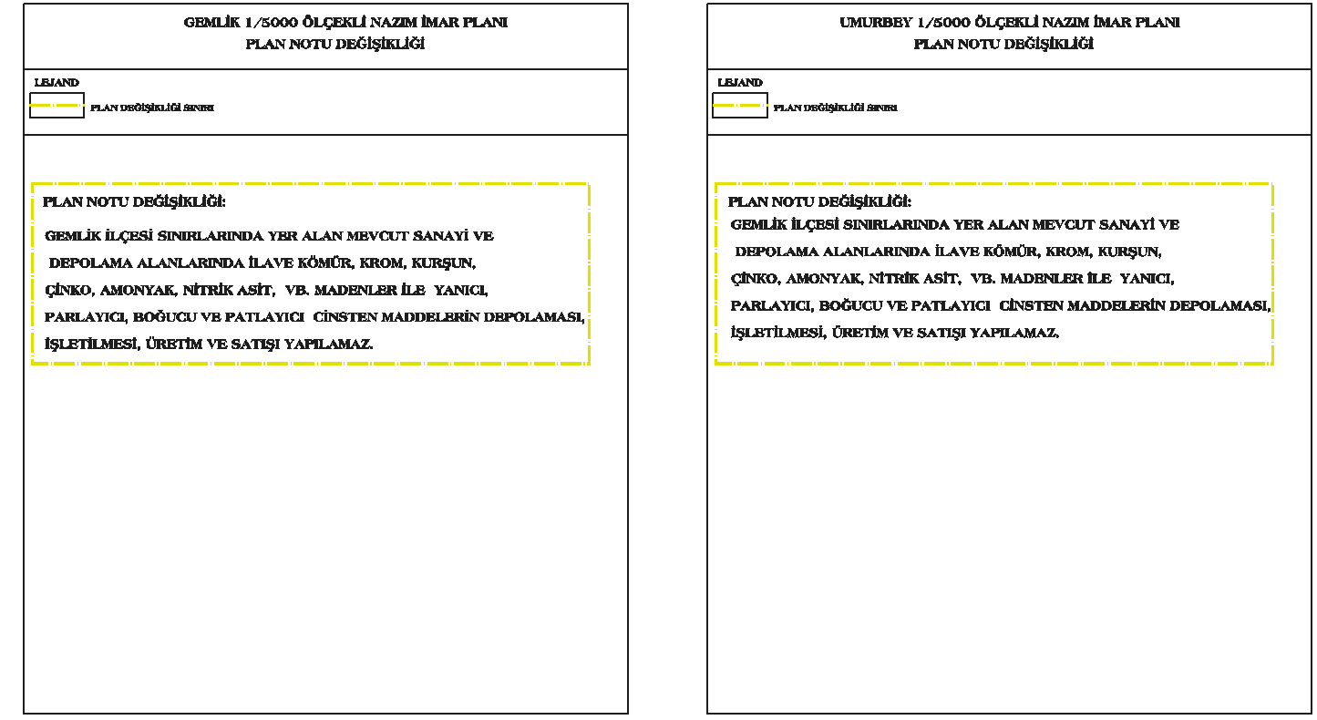 | Gemlik1/5000 ölçekli Nazım İmar Planı Plan Notları ve 1/5000 ölçekli Umurbey Nazım İmar Planı Plan Notlarının sanayi alanları ve depolama alanları hükümlerinde değişiklik |